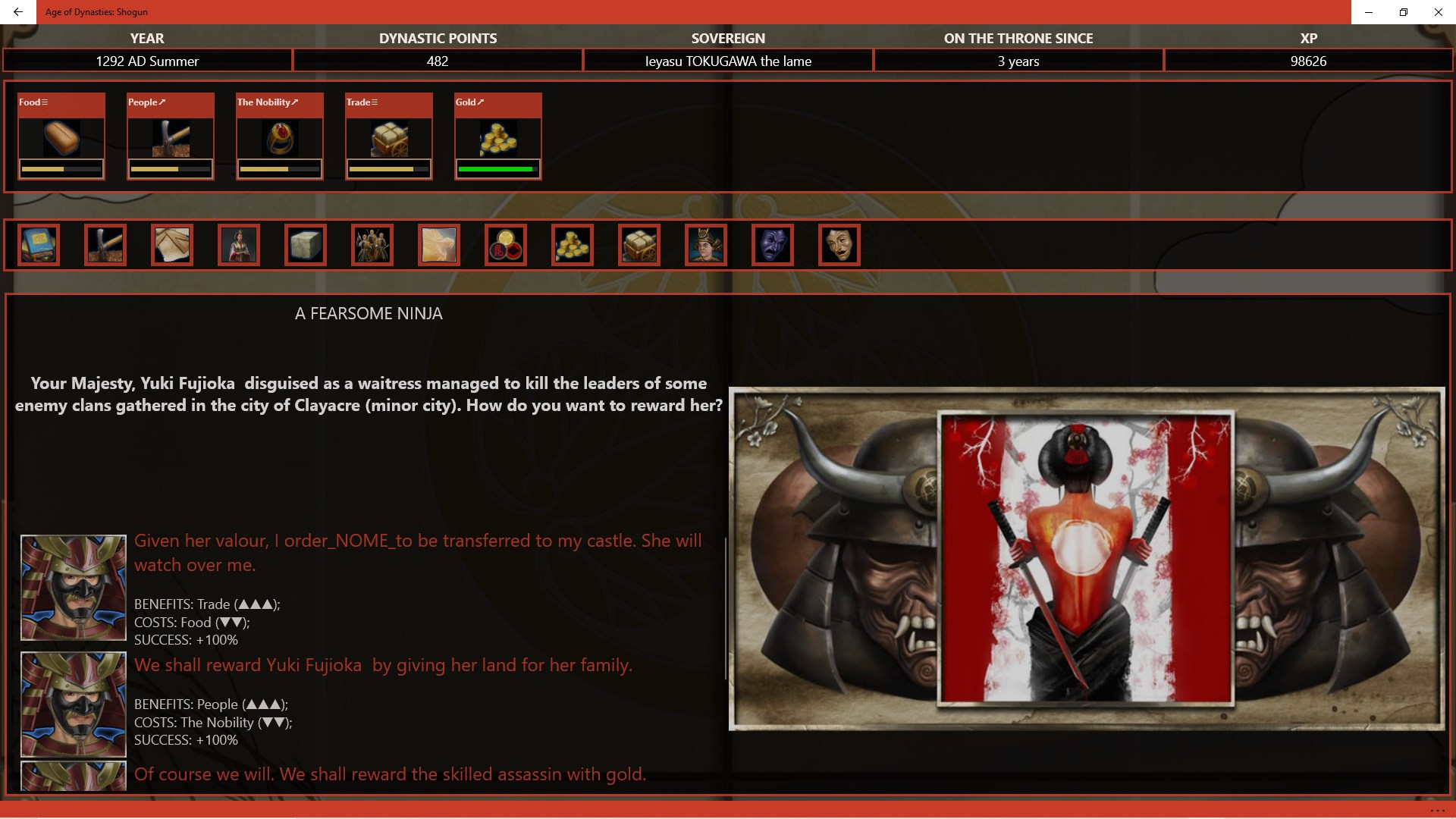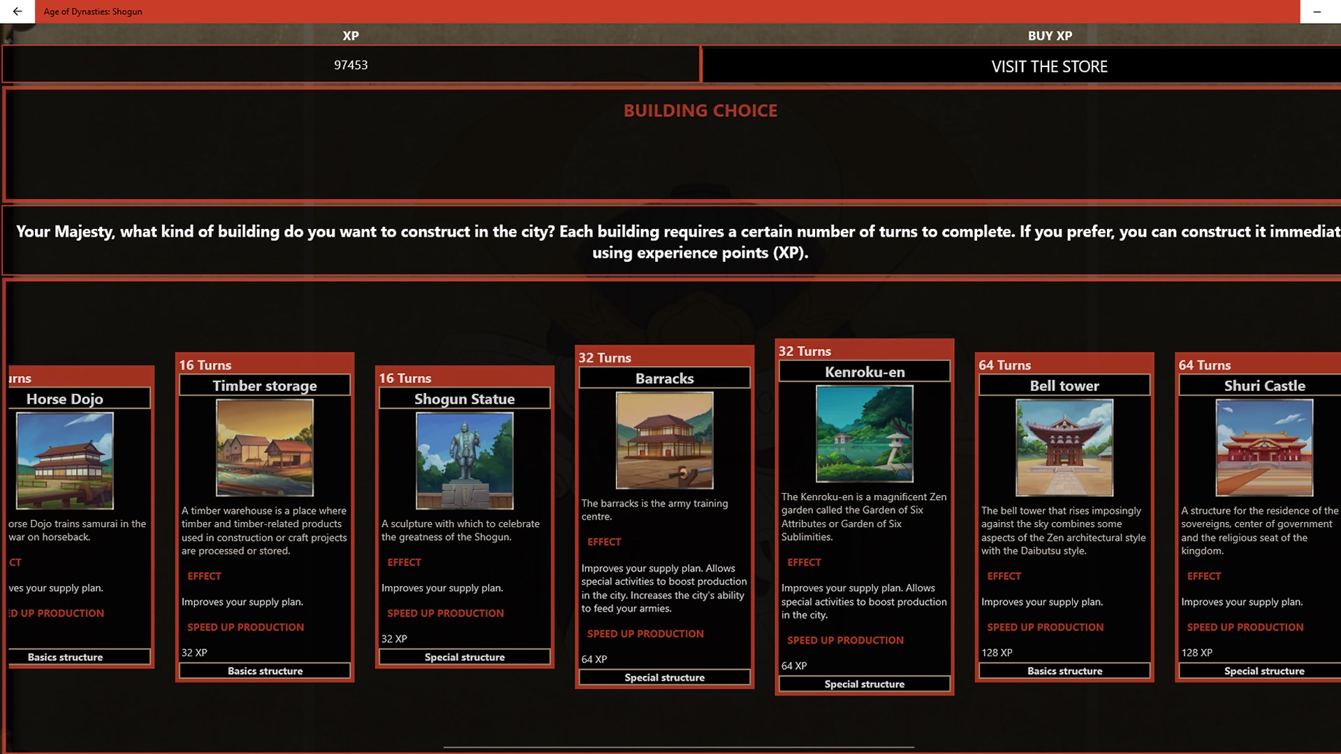 Secure a long-lasting empire by educating your ronin to follow the Bushido (the way of the warrior) and preparing them to become feared and respected samurai, ready to succeed you to the title of Shogun until the last samurai, heir to your dynasty, conquers all of Japan.