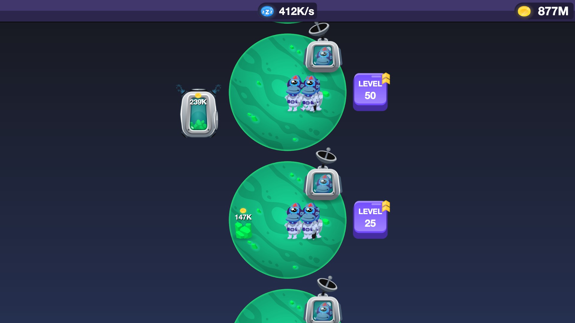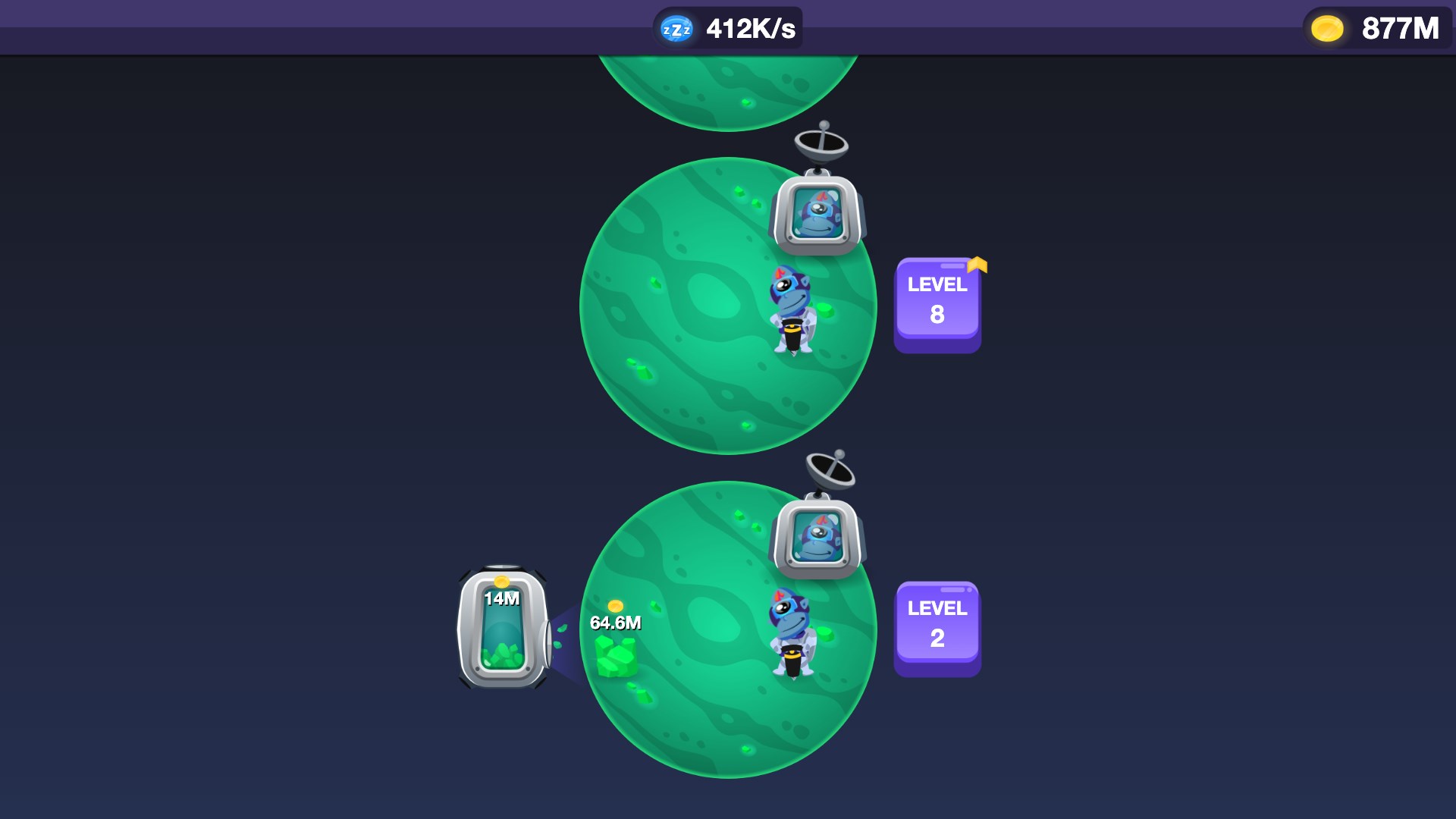 Invest in new machinery, upgrade your tools, hire Monkey Managers, increase your income and become the biggest Gold Tycoon of the galaxy!