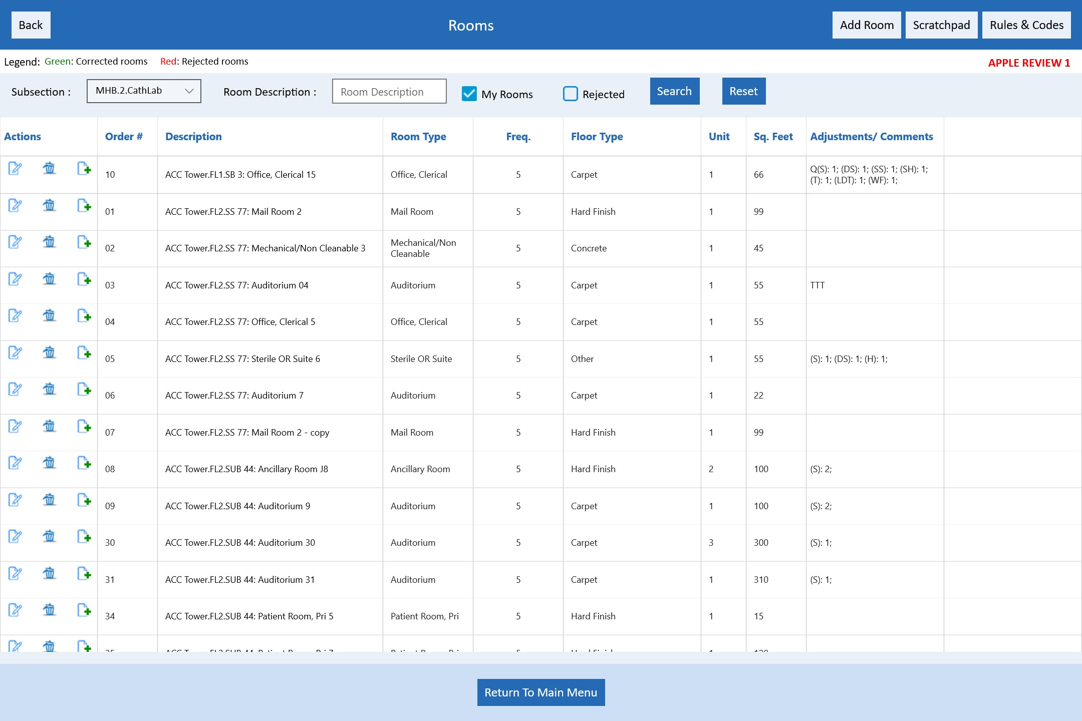 Automated Production for Entered Rooms, QA Feedback, Internal Messaging and Facility Notes. Data validation preventing illogical room choices