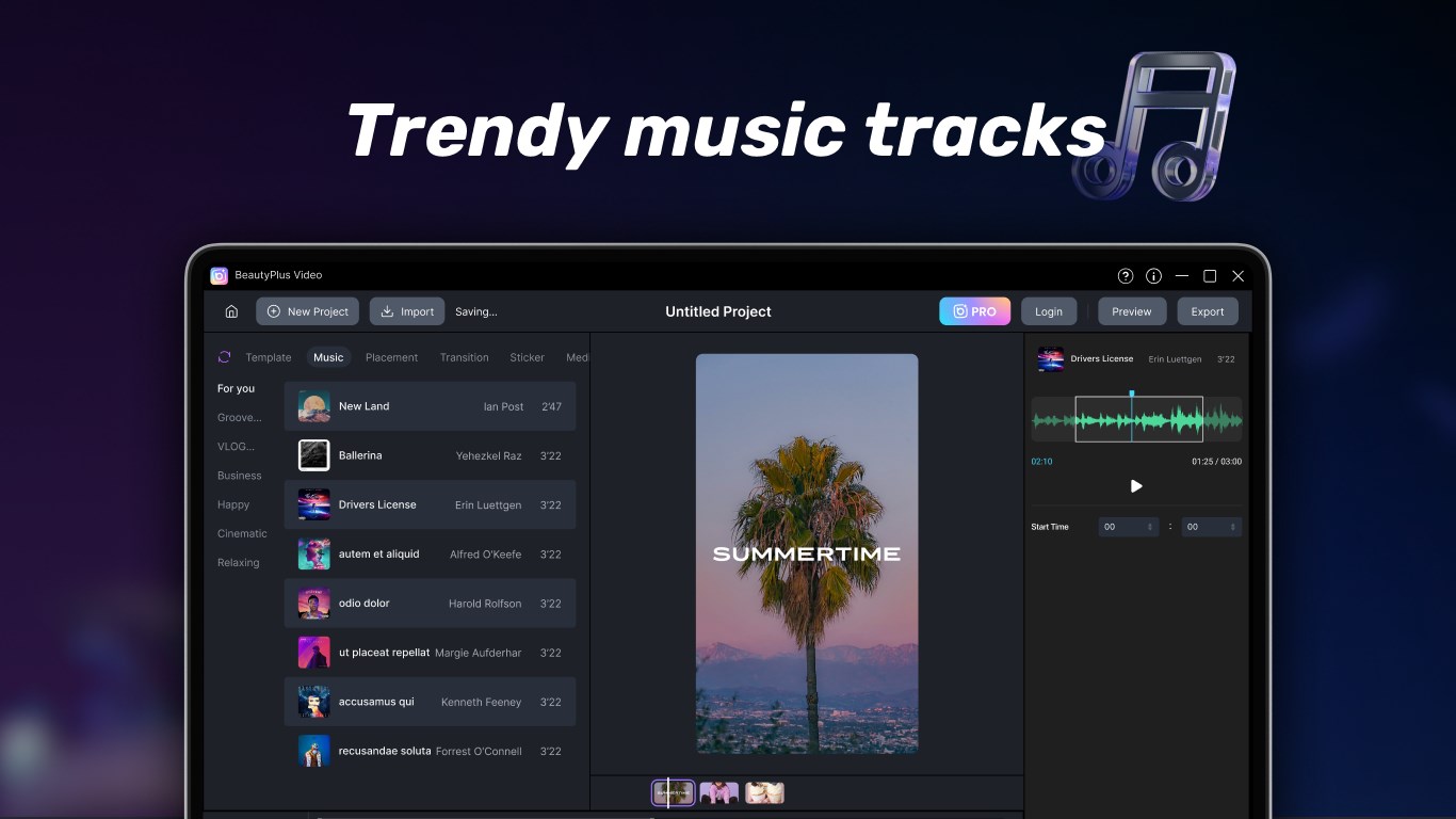 BeautyPlus Video is a stunning, easy-to-use editing application for videos and vlogs. We aim to provide our users with a creative, dynamic editing experience so you can create videos for any type of business, with features that match the latest online styles and trends. Even if you are not a professional video editor, you can easily create captivating short videos with BeautyPlus Video. More importantly, we created BeautyPlus Video to be your key to achieving success with your business.