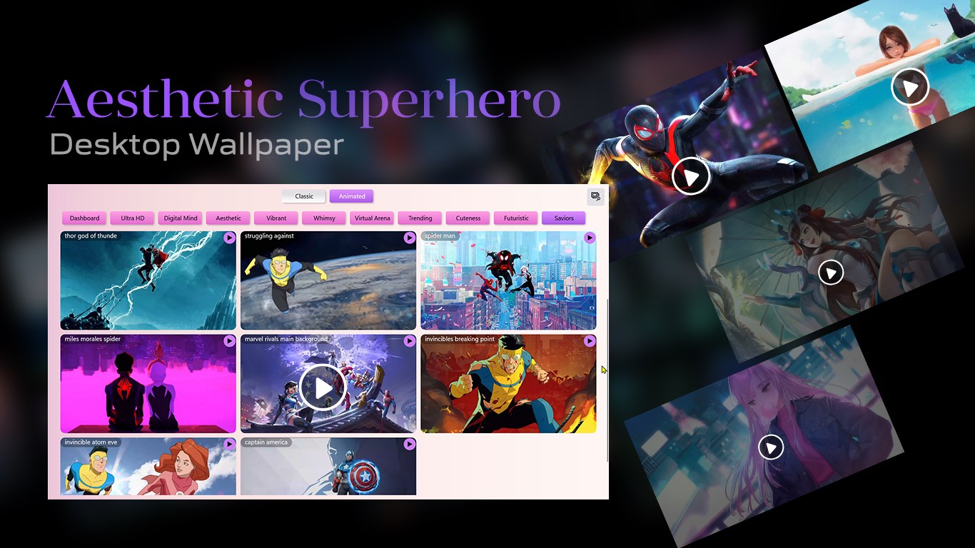 Aesthetic , Vibrant , Whimsy , Virtual Arena , Trending , Cuteness , Futuristic , Saviors