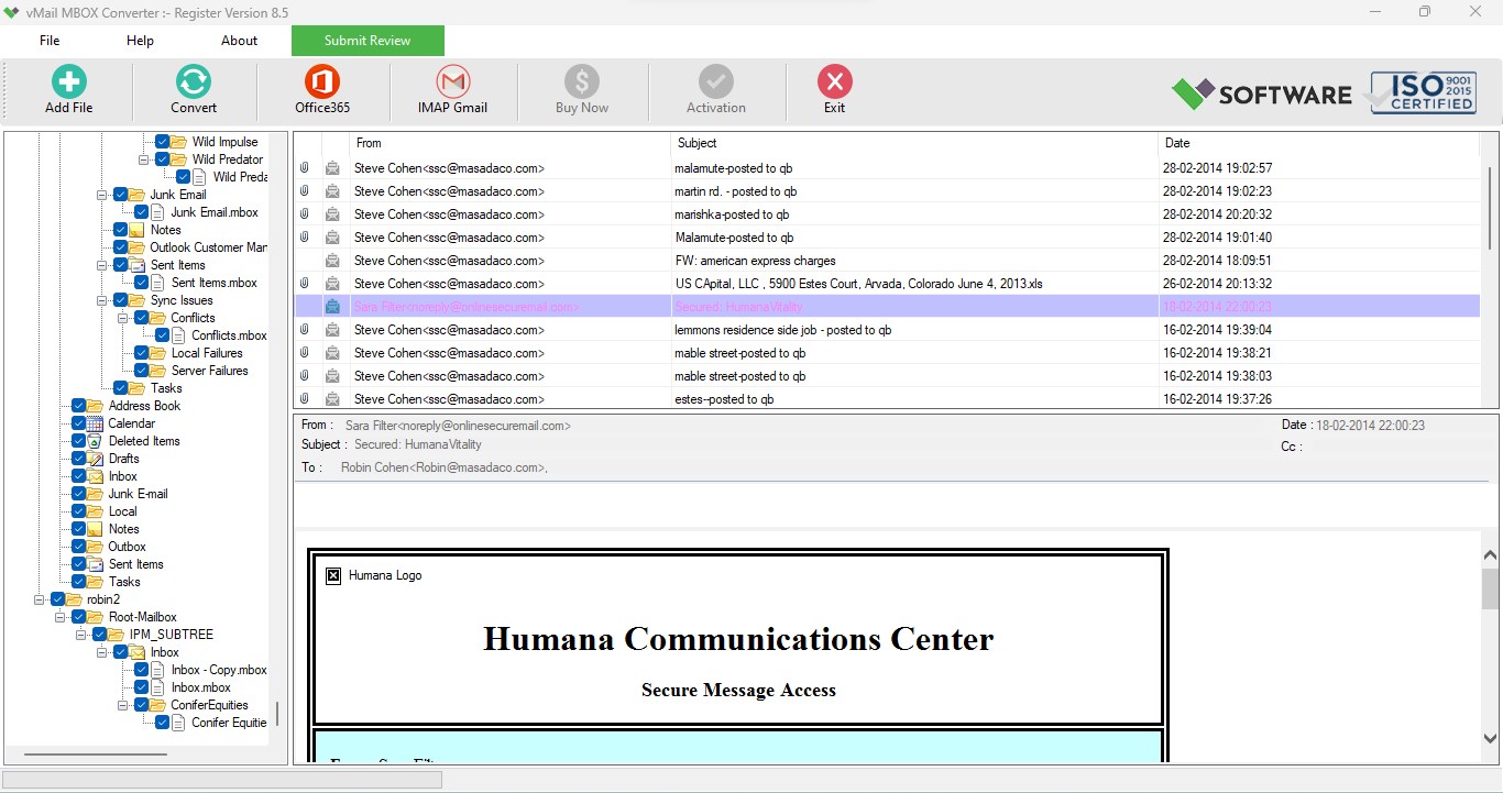 The vMail MBOX to PST Converter is an excellent Mime Mail Conversion tool that can flawlessly convert Thunderbird MBOX files to Outlook PST file format, as well as other target formats such as EML, MSG, PDF, PST and also Import MBOX Data into Office 365 migration to Live Exchange. Additionally, the software can also convert (*.eml) Mime Mail and Thunderbird MBOX files to PST format, which is a commonly used and easily accessible file format. The converter is compatible with all versions of MS Windows and can handle both Unicode and ANSI PST files in MS Outlook. You can free to try the software for free with a trial version
