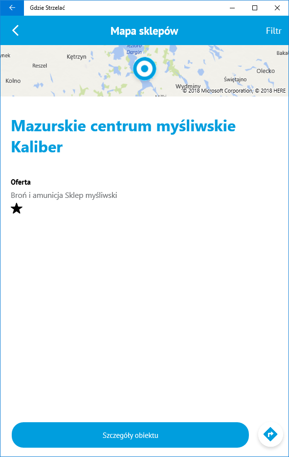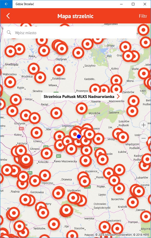 The moblina application for the gdziestrzelac.eu service, whose main purpose is to provide shooters with information about shooting ranges and weapon stores.