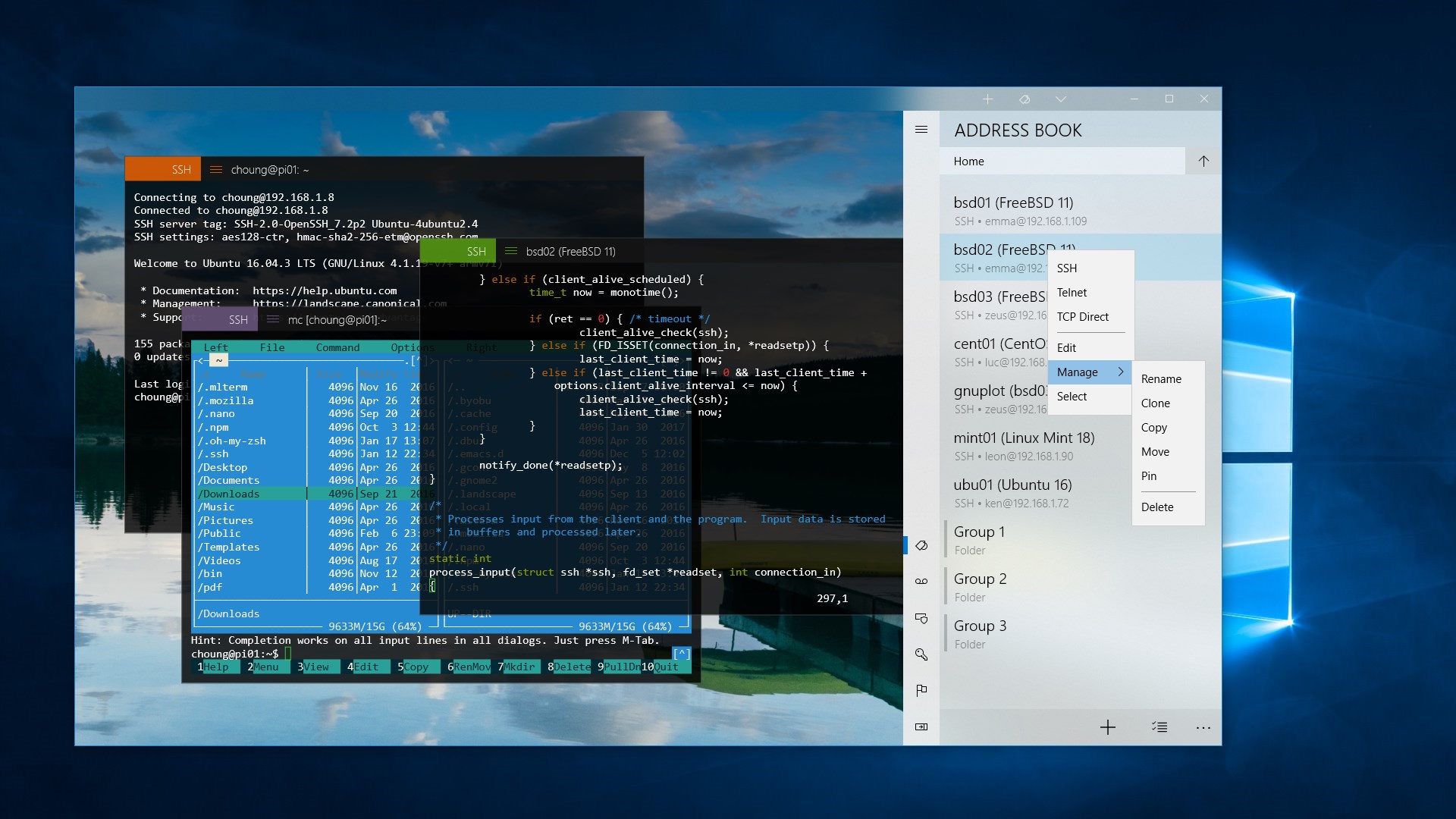 Use Address Book to manage servers and customize their connection settings including Auto Login and Startup MacroPin address book entries and folders to Start screen for quick accessUse Command Macro to create simple send/wait type script filesAutomatically display graphic outputs from server software that supports Tektronix 4014 terminal commands for drawing lines and images such as "gnuplot"Supports X11 forwarding for SSH sessionsSupports directly connecting to Docker containers without installing any additional program (ex. OpenSSH server)Supports serial communication over USB-to-Serial adapters, Bluetooth virtual serial ports and etc. (on-board serial ports commonly found in legacy computers are *NOT* supported)Supports Bluetooth/RFCOMM communication (Example with Windows IoT: https://token2shell.com/howto/bluetooth-iot-example/)Upload or download files via SFTP/SCP hybrid custom engine that maximizes transfer speedEnter once in Line Sender and automatically send it to all sessionsIncludes Login Agent for temporarily caching credentials to minimize repeatedly entering passwords for the same SSH servers and private keysSupports Agent Forwarding for the public key user authentication in SSH connectionsSupports PIV smart cards (ex. YubiKey 4/Neo) for the SSH public key user authentication. You can also copy an OpenSSH public key directly off a PIV smart card and conveniently set up your SSH.Supports direct PDF file printing over SSH or TELNET (https://token2shell.com/howto/local-print/)Supports local printing that can redirect remote text output to a local printer. You can also directly send the output to a network printer without opening a preview window.Supports ZModem (with resume always enabled) and XModem 1K/CRC/CHECKSUMSupports displaying all received data in hexadecimal format (Hex Mode)Seamlessly supports all the character code pages and input methods installed on your Windows including characters that require compositions such as Chinese/Japanese/KoreanSupports Windows 10 Mobile and Continuum