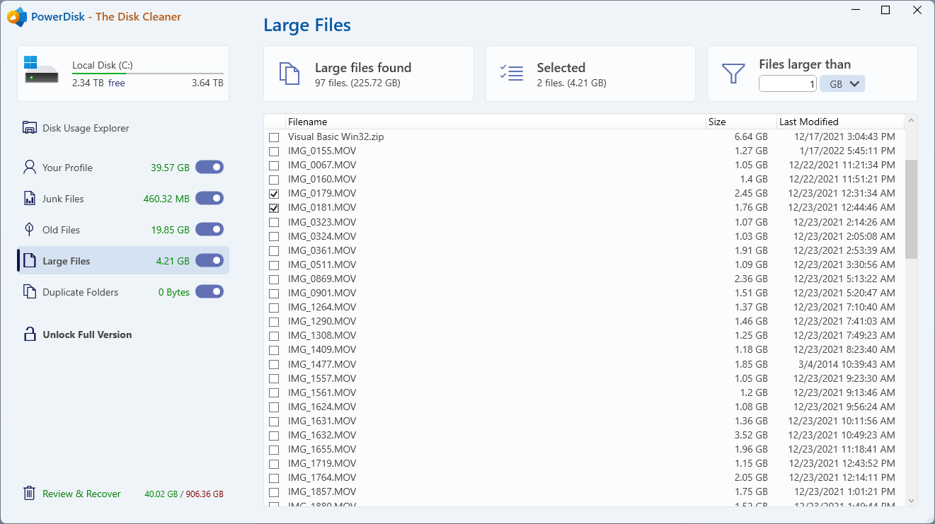• Remove wasted space from any disk, not just drive C:, including USB, Network Drives, SSD, M.2, HDD, and plugin drives..
