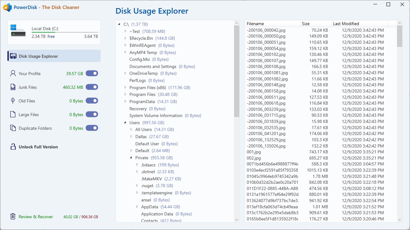 It understands Windows folders, special folders, your profile, and the kinds of files Windows storesRemoves wasted space from any disk, local, removable, networks, and virtual disks.Separates wasted space from your profile and everywhere else.