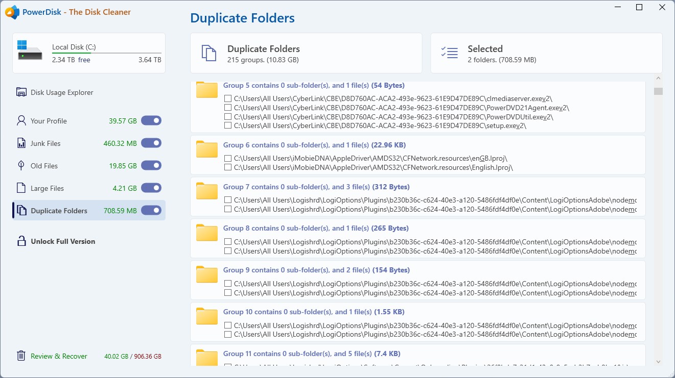 • Unlike other multi-platform utilities, Power Disk understands Windows and your profile, so you can find wasted space anywhere.