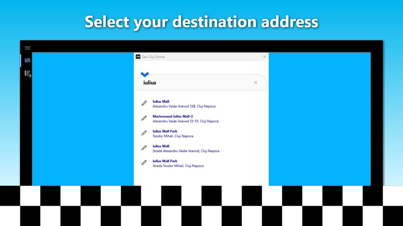 - Press the "Next step" button, check all the order details, and place the taxi order by pressing the "START order" button.