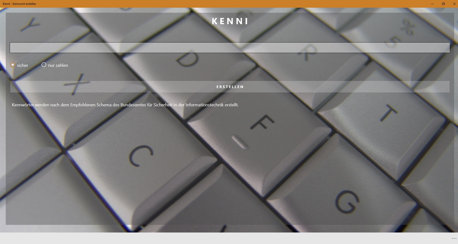 Mit dem Kenni Kennwort Generator können Sie auf einfachem wege verschiedene Arten von kennwörtern erstellen.