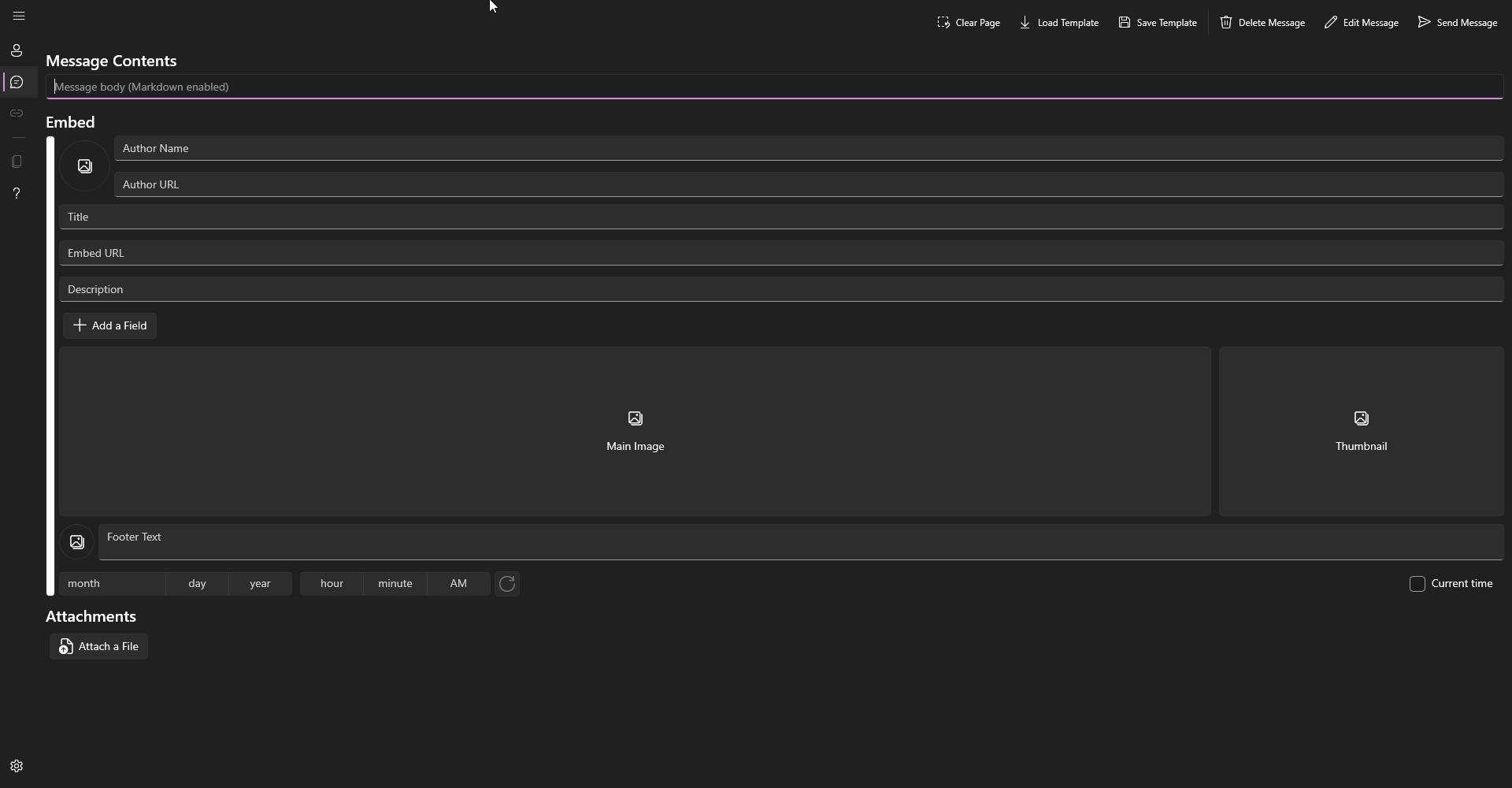 Manage your Bot accountSend messages, files and custom embeds to your Discord channelsSave your messages templates and use them later