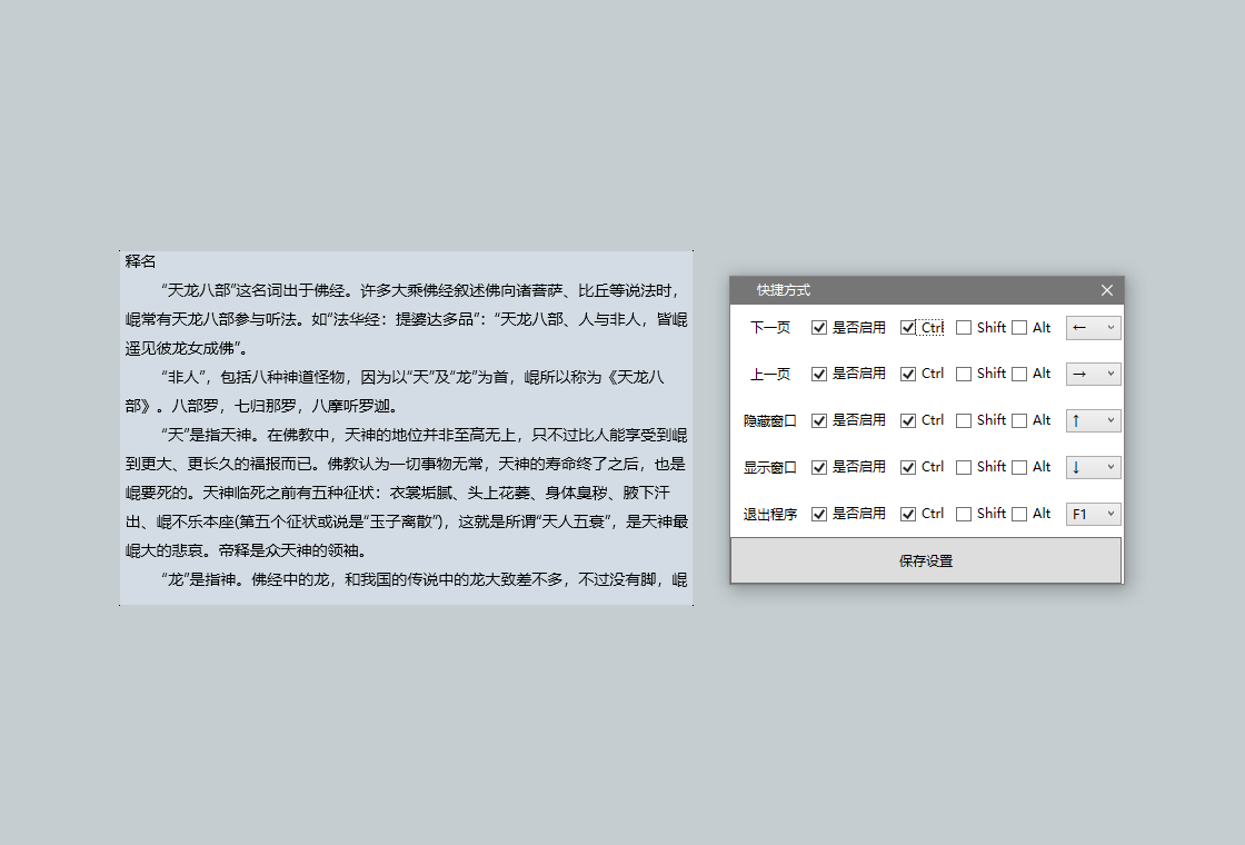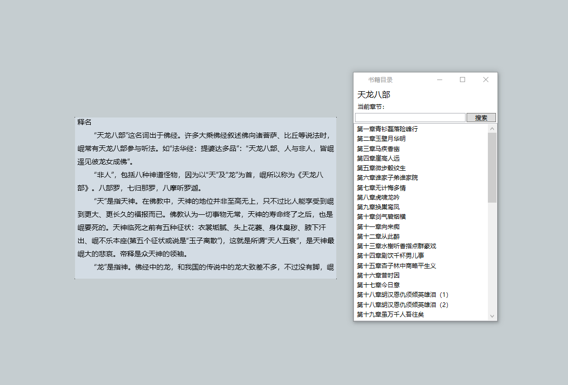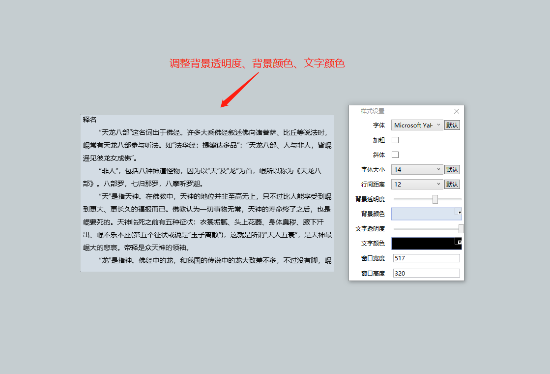 本软件在桌面显示一块阅读区域,可调整背景透明度、字体大小和颜色,极其小巧精致。用户在上班期间,可放心地偷偷阅读小说,比较隐蔽,避免被同事、老板发现。是上班划水、摸鱼、打工人的好助手。