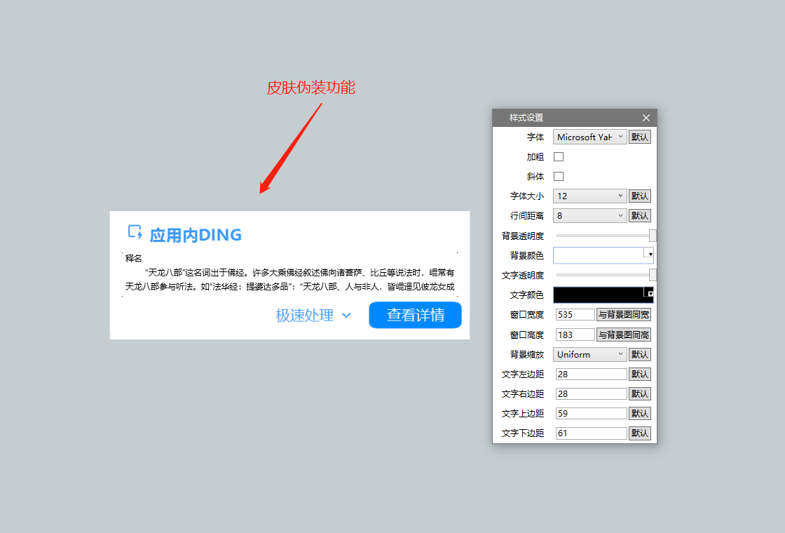 背景透明,文字透明窗口可调整任意大小,文字可单行显示自动隐藏,鼠标移开就消失定时自动翻页皮肤伪装,可伪装成弹框广告窗口置顶,位于其它软件之上隐藏任务栏和托盘栏图标
