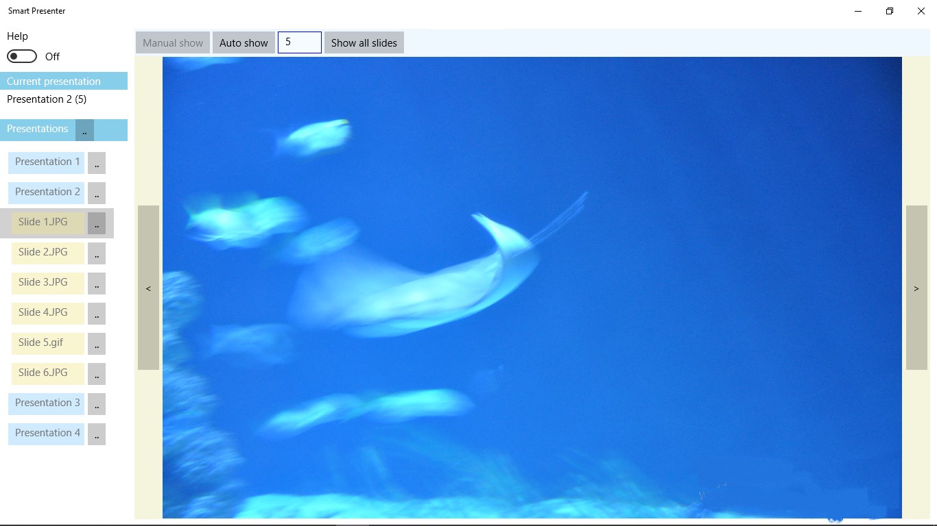 Smart Presenter allow you to show miscellaneous file types, images, movies, sounds, html pages and xaml made slides in one presentation. Such files as pdf, word, excel, can be easily showed in external application using "Open with.." function.
