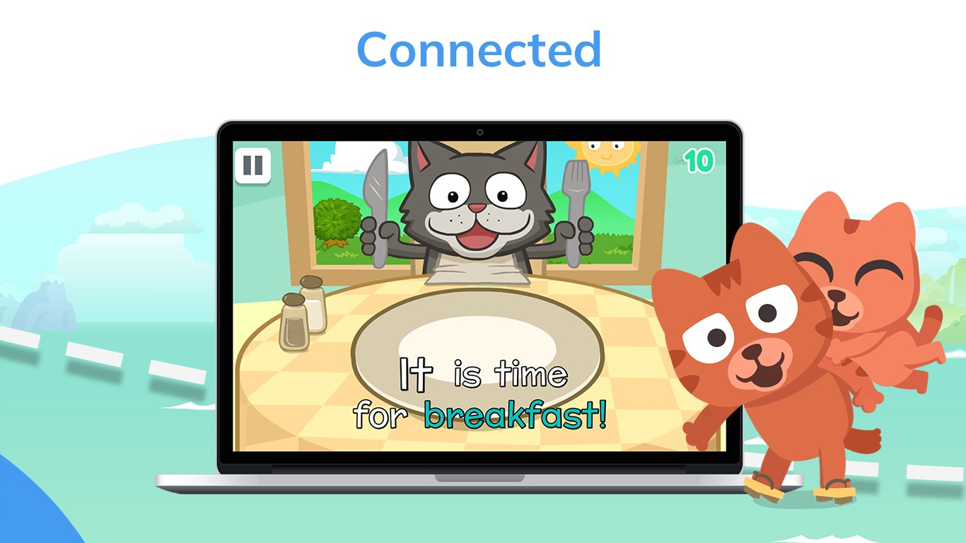 This is the school version of Studycat's 'Fun English' app, used by teachers and parents to teach and see learning progress in real-time.