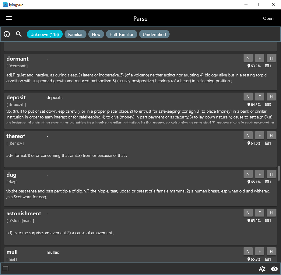 4) Establish your own vocabulary(known words & new words), gradually enrich the thesaurus while using iYingYue. The more close to your actual vocabulary, the more accurate to extract unknown words.