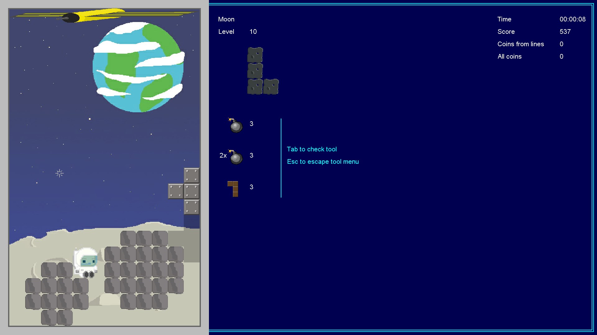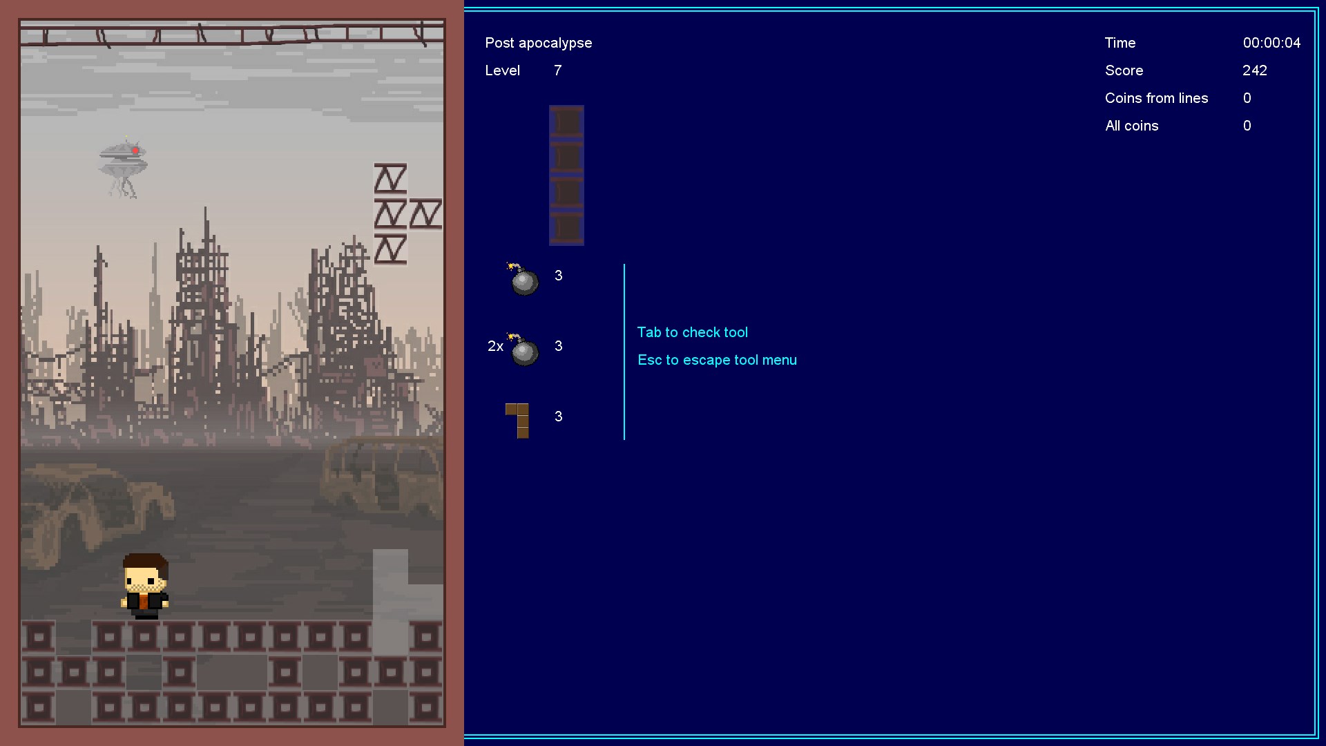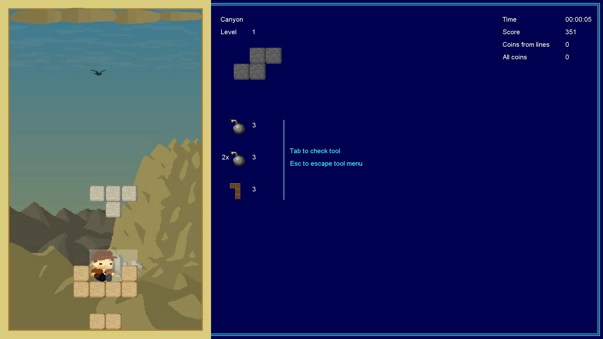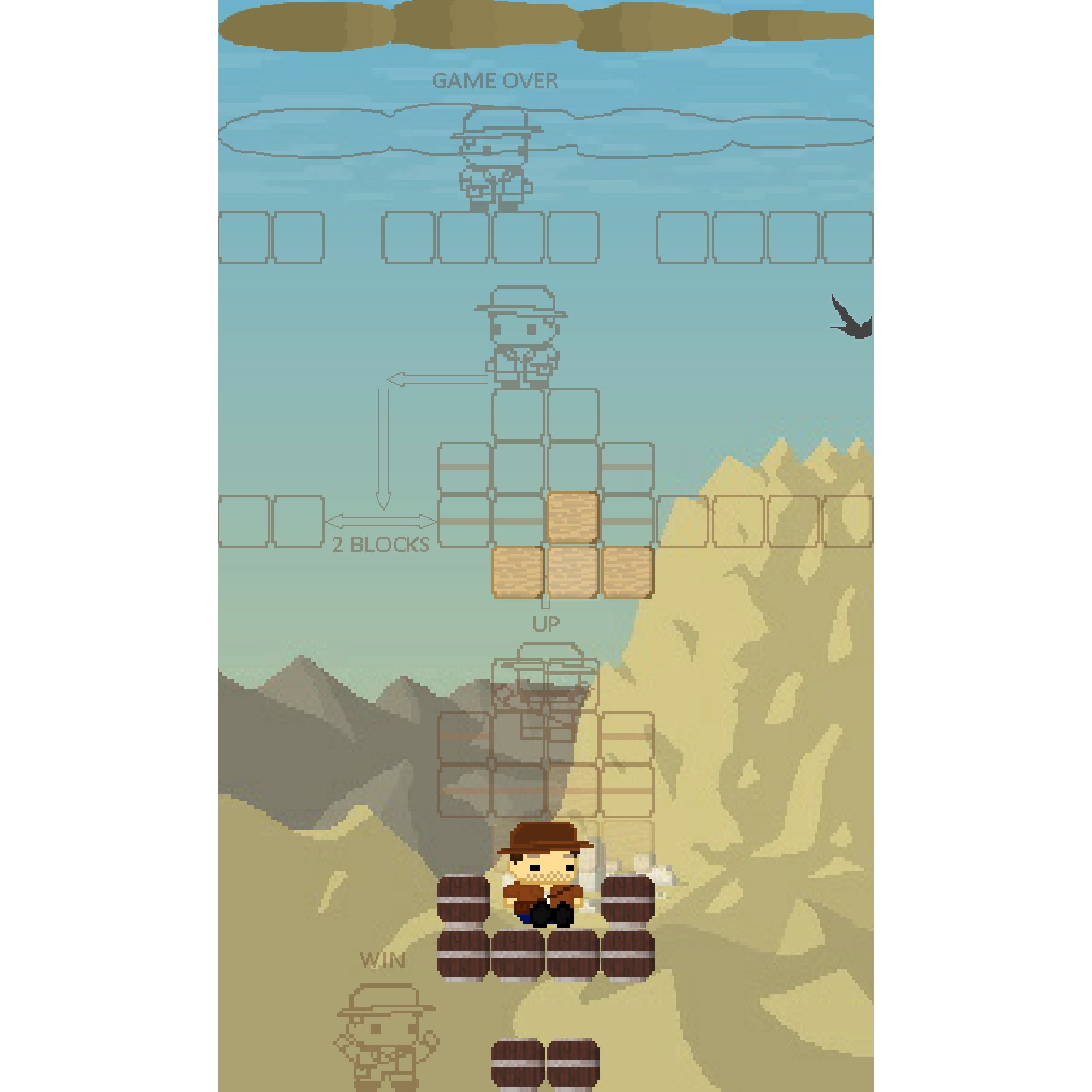 Adventures of five characters who need to be helped to escape from the environment of blocks. And a classic logic puzzle with the destruction of a line of blocks.
