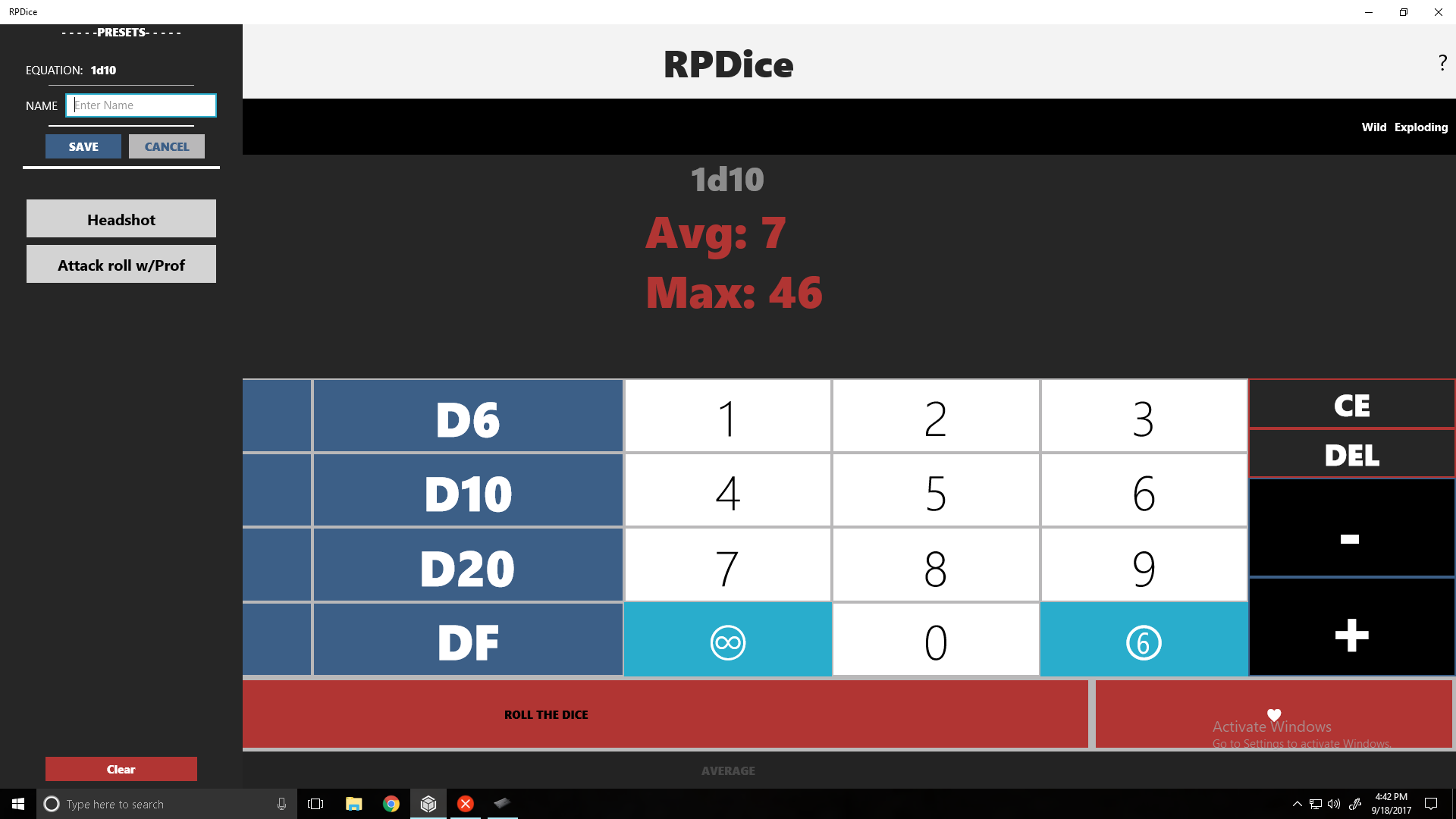 Robust Equation BuilderBuild and Save PresetsSavage Worlds Wild Die FunctionalityEnable Exploding Dice