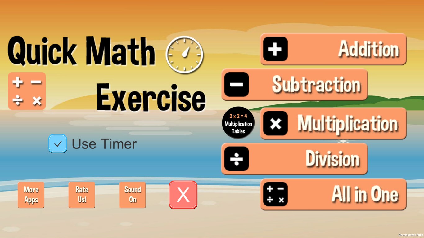 Quick Math ExerciseLearn addition, subtraction, multiplication and division of small numbers to large numbers.You can learn multiplication tables from 1 to 12 easily.Time out buzzer after 12 seconds.Option to play with and without timer.