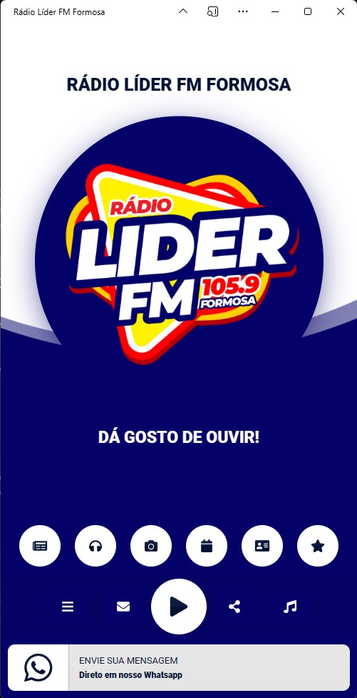 A mais nova rádio de Formosa! Um aplicativo completo para você ouvinte líder! Rádio Líder FM Formosa, 105.9!