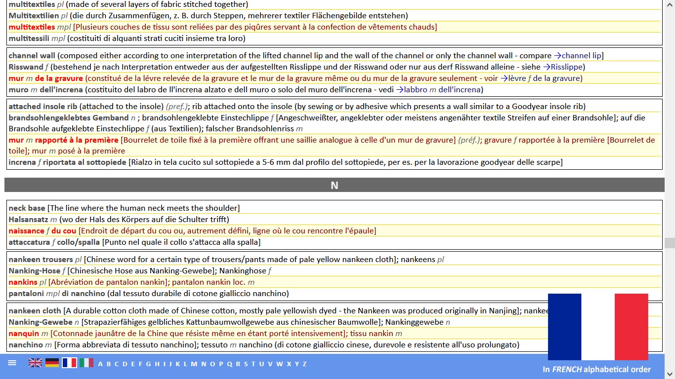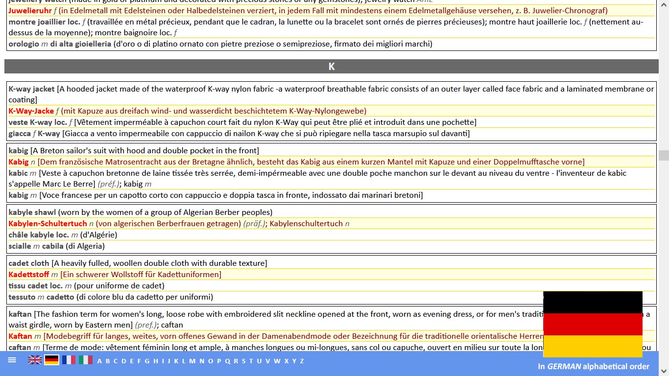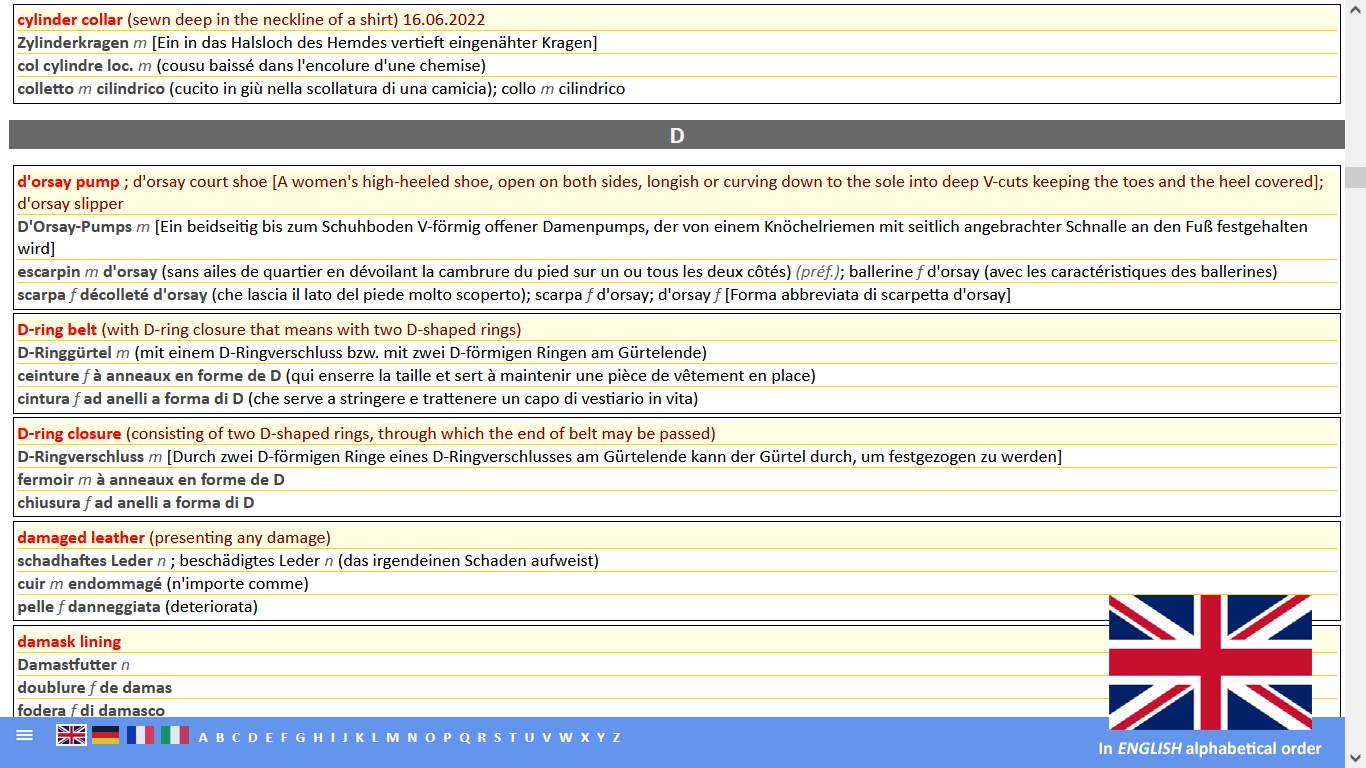 MEHRSPRACHIGES GROSSES MODE-, MODEACCESSOIRES-, SCHUH- UND LEDERGLOSSAR UND - WÖRTERBUCH