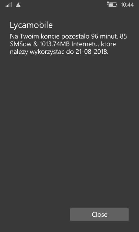 * program umie obsłużyć informację z Lycamobile iż nie ma aktywnych pakietów.