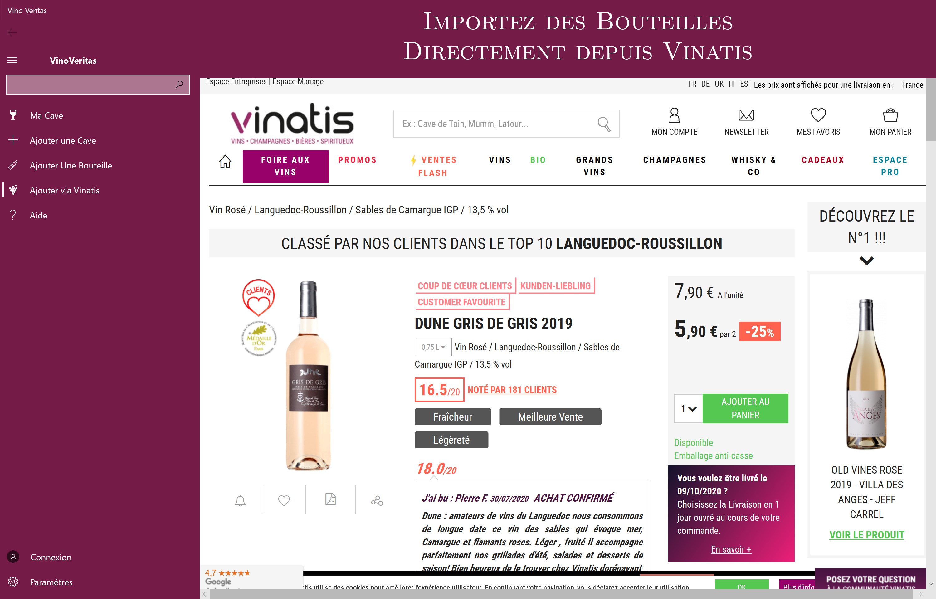 -importer directement et automatiquement vos dernières commandes chez vinatis