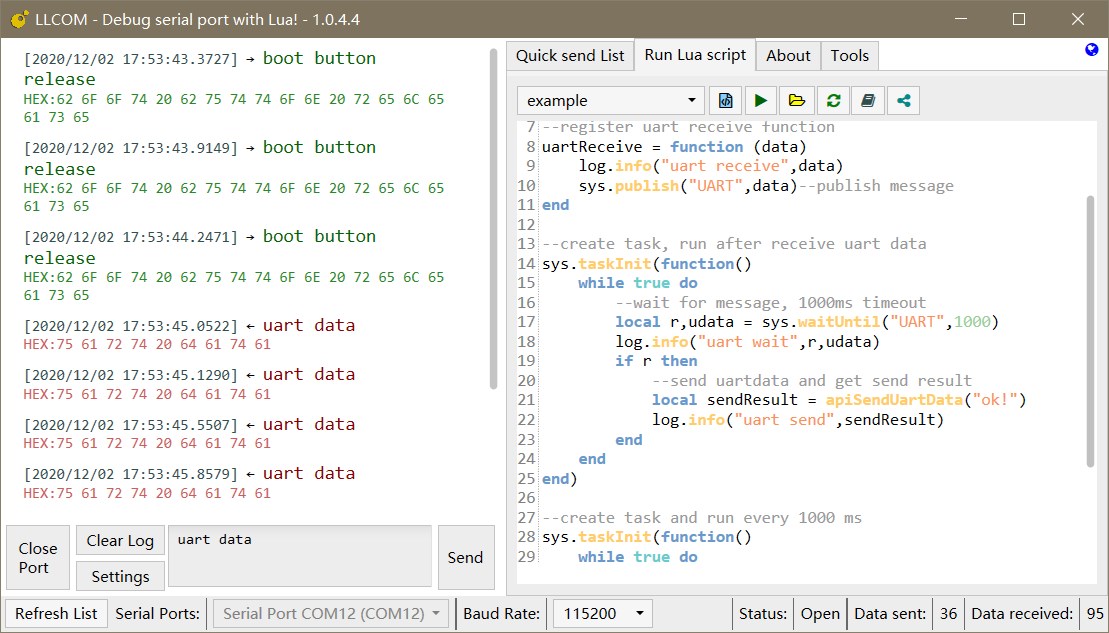 Open source serial debugger, with lua scripts.