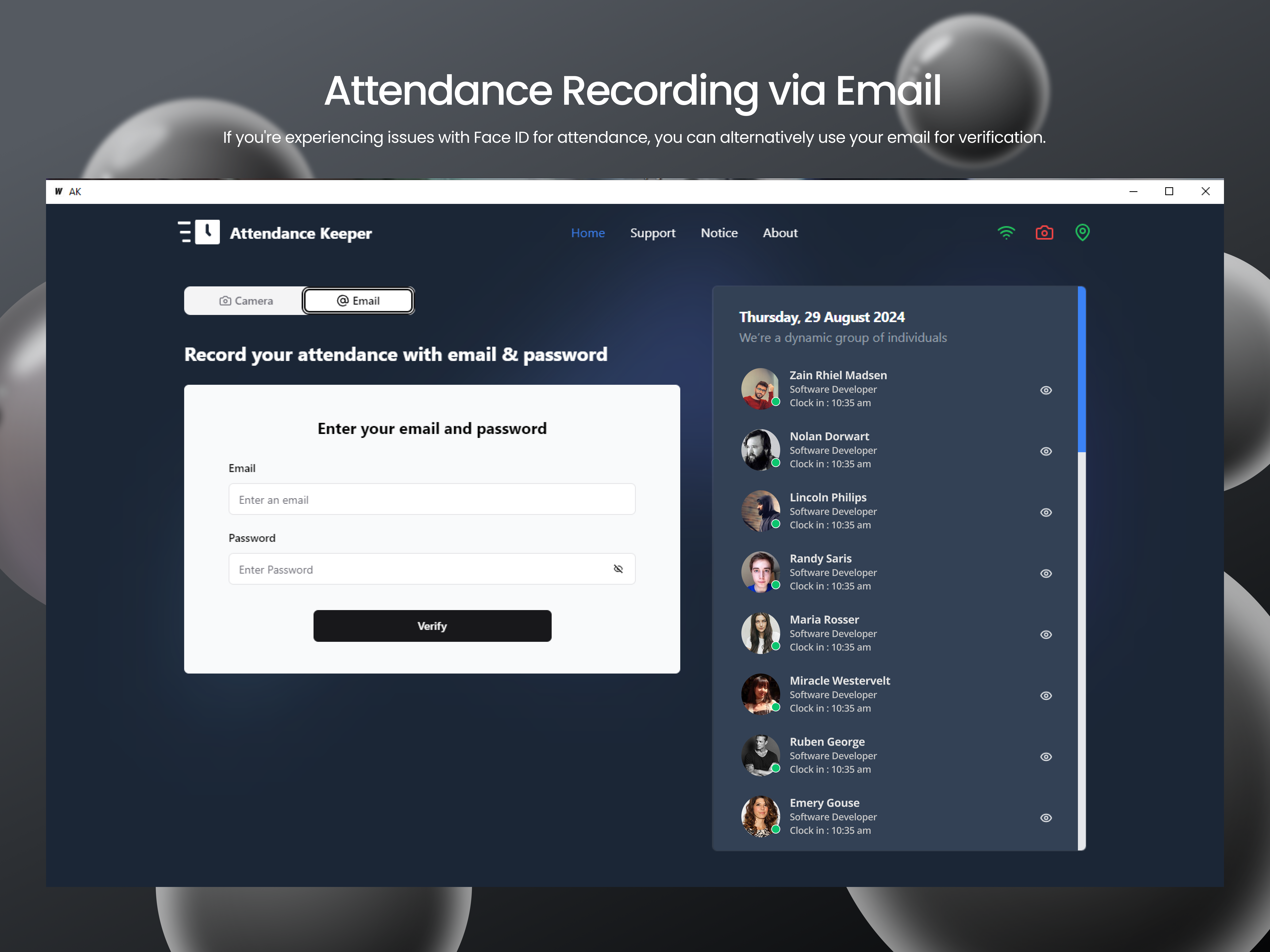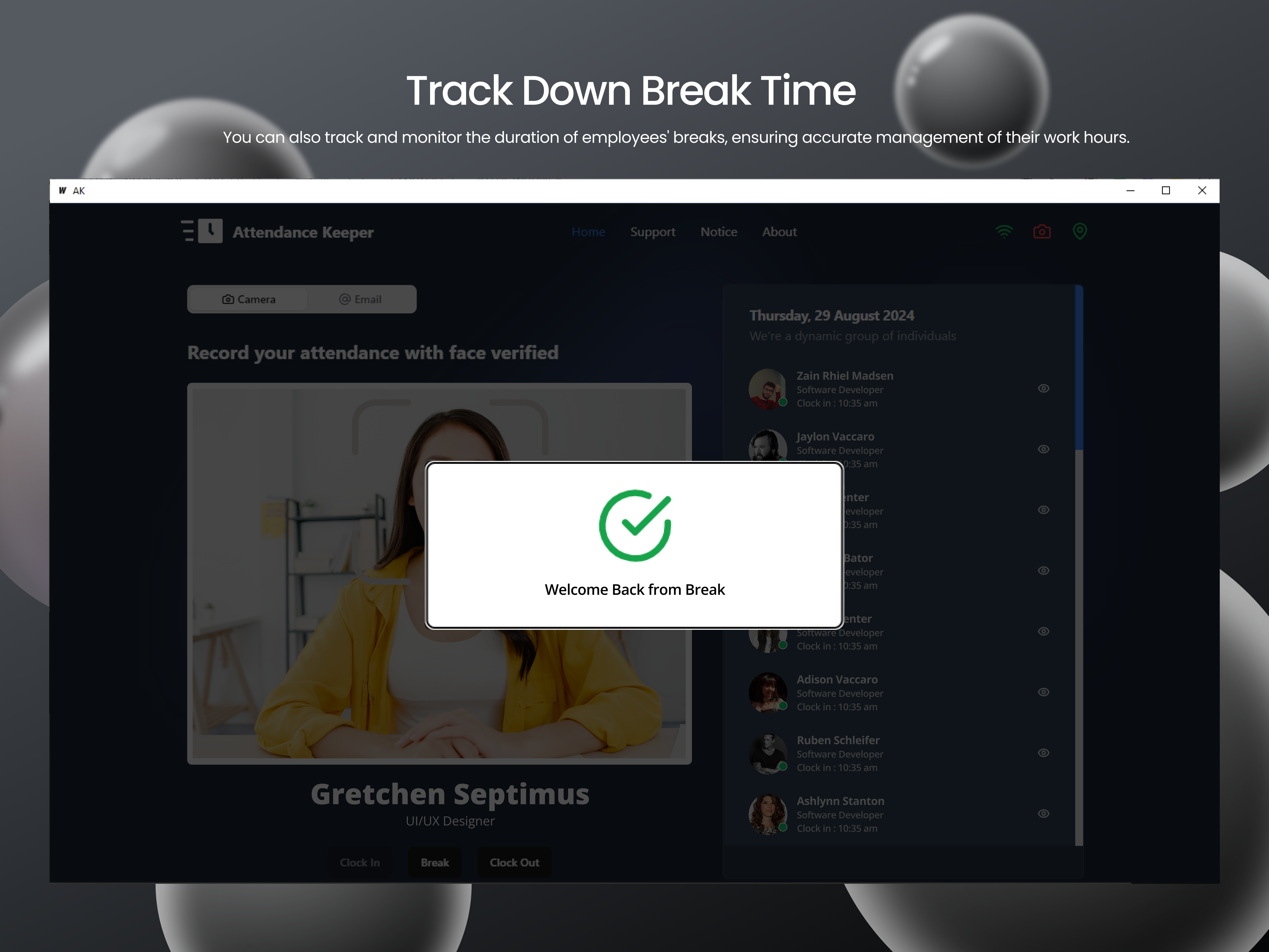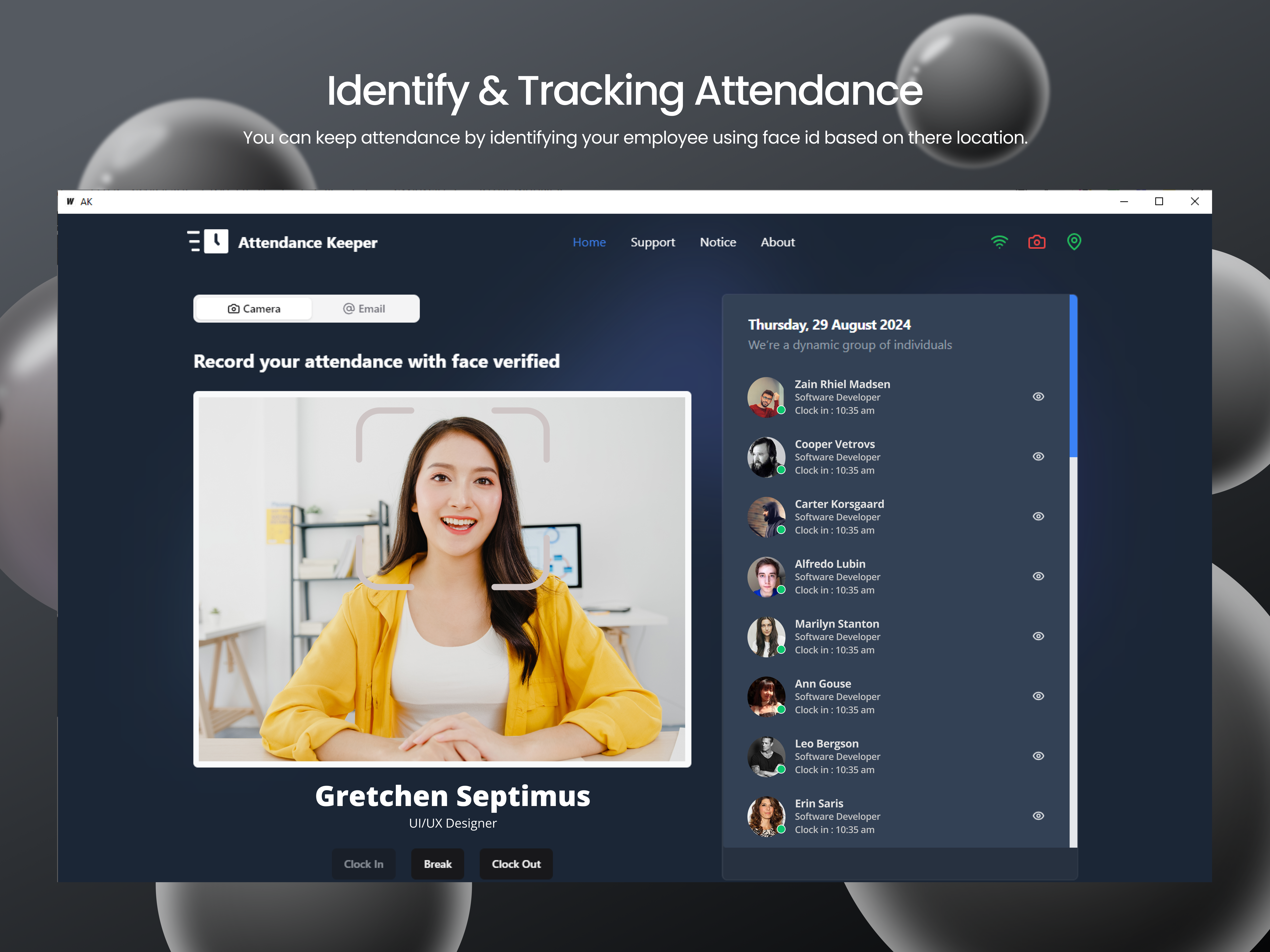 Attendance Keeper is a simple and innovative solution to help you manage and keep track of employee attendance with 100% accuracy in real-time. Start for FREE and prevent proxy clock-in and clock-out.