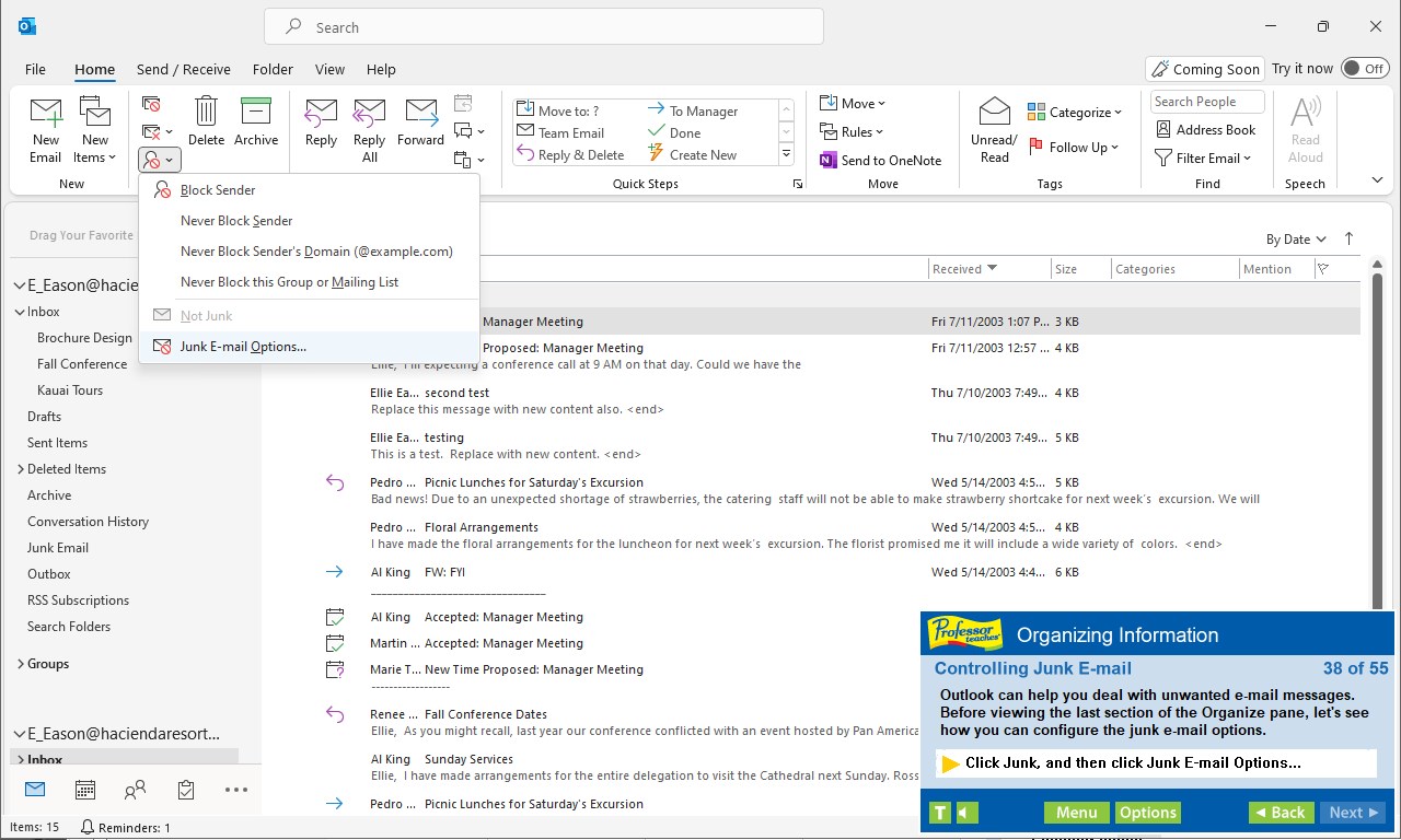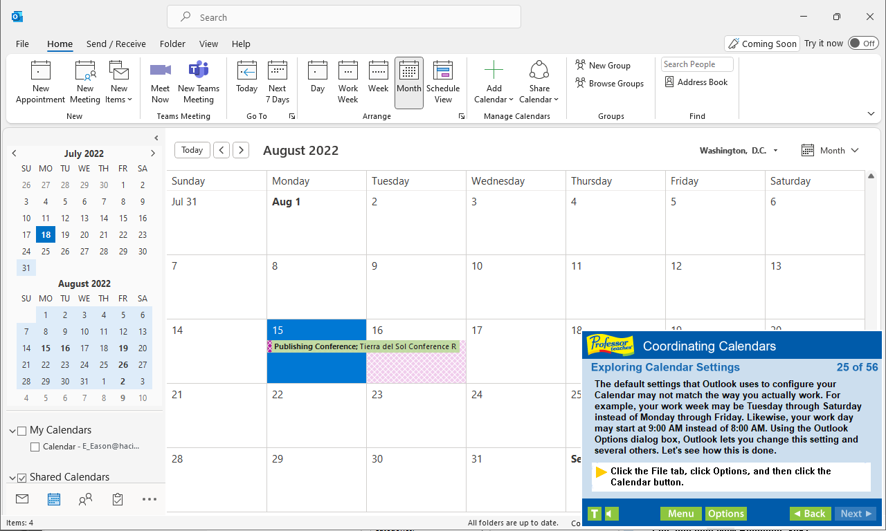 Professor Teaches Outlook 2021 is a computer training course designed to teach you everything you need to know about the premier e-mail program for business. Unlike other computer training that use videos to show you how to use a program, Professor Teaches provides hands-on training in a realistic simulation of the actual Outlook 2021 software.