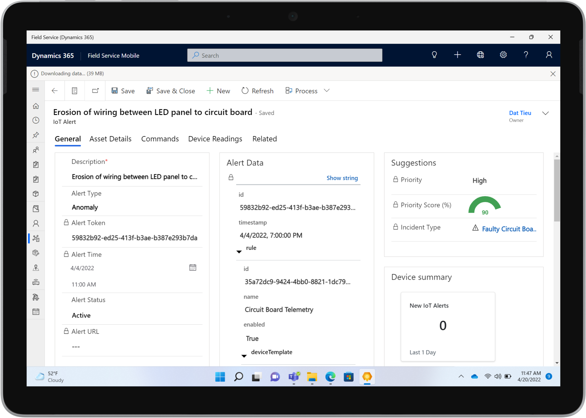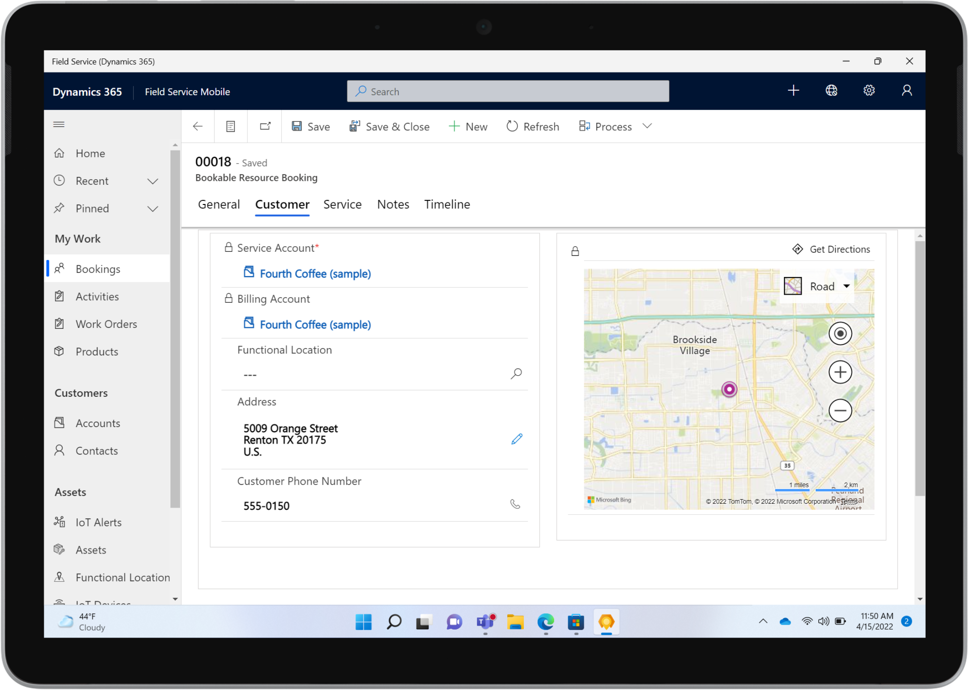 The Field Service mobile app is specifically crafted to the field service worker's needs with features such as robust offline capabilities to continue accessing and interacting with the data that they need when visiting remote destinations without internet connectivity. Periodic data sync keeps the back-office informed of work being performed, so that the proper actions can be taken or kick-started as appropriate. Built on the Microsoft Power Apps platform, the mobile application is entirely customizable to define what types of data field service workers can access and much more.
