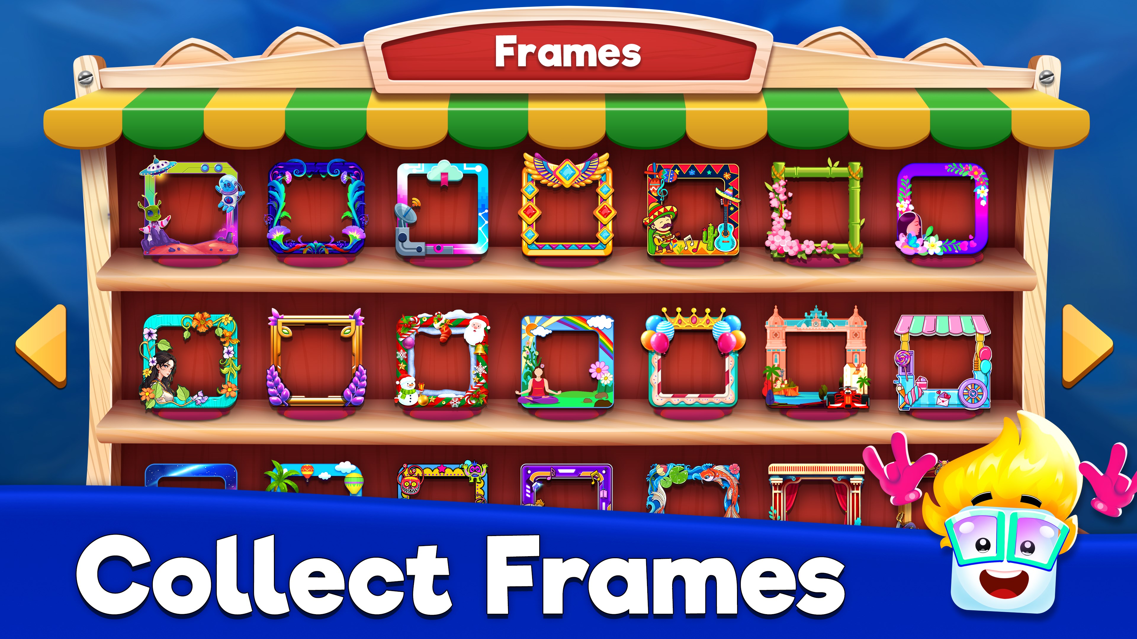 1vs1, 2v2, Invite Friends, Online mode, 4 Players mode, Dice, Frames