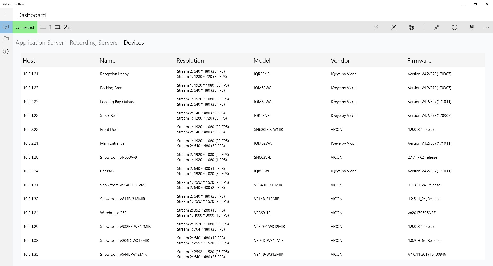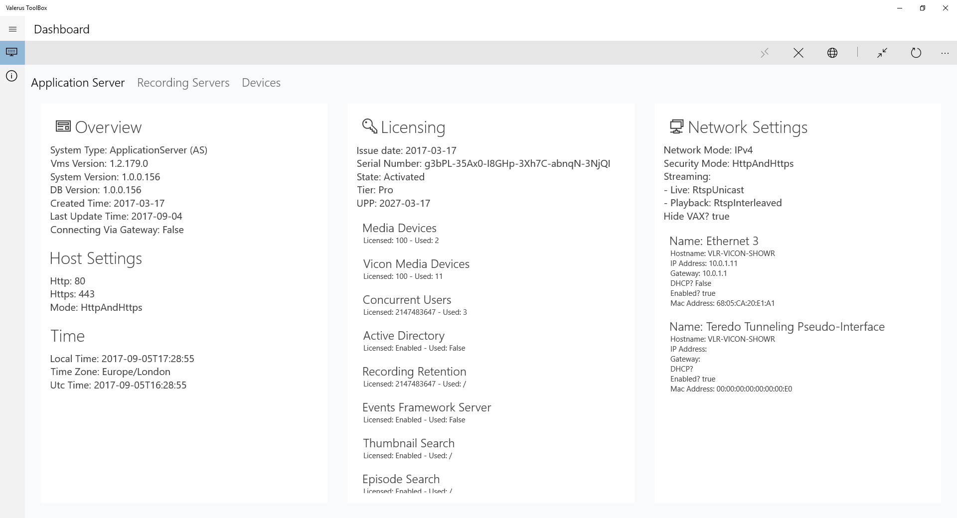 Valerus Toolbox is compatible Valerus VMS version 1.2 and above.
