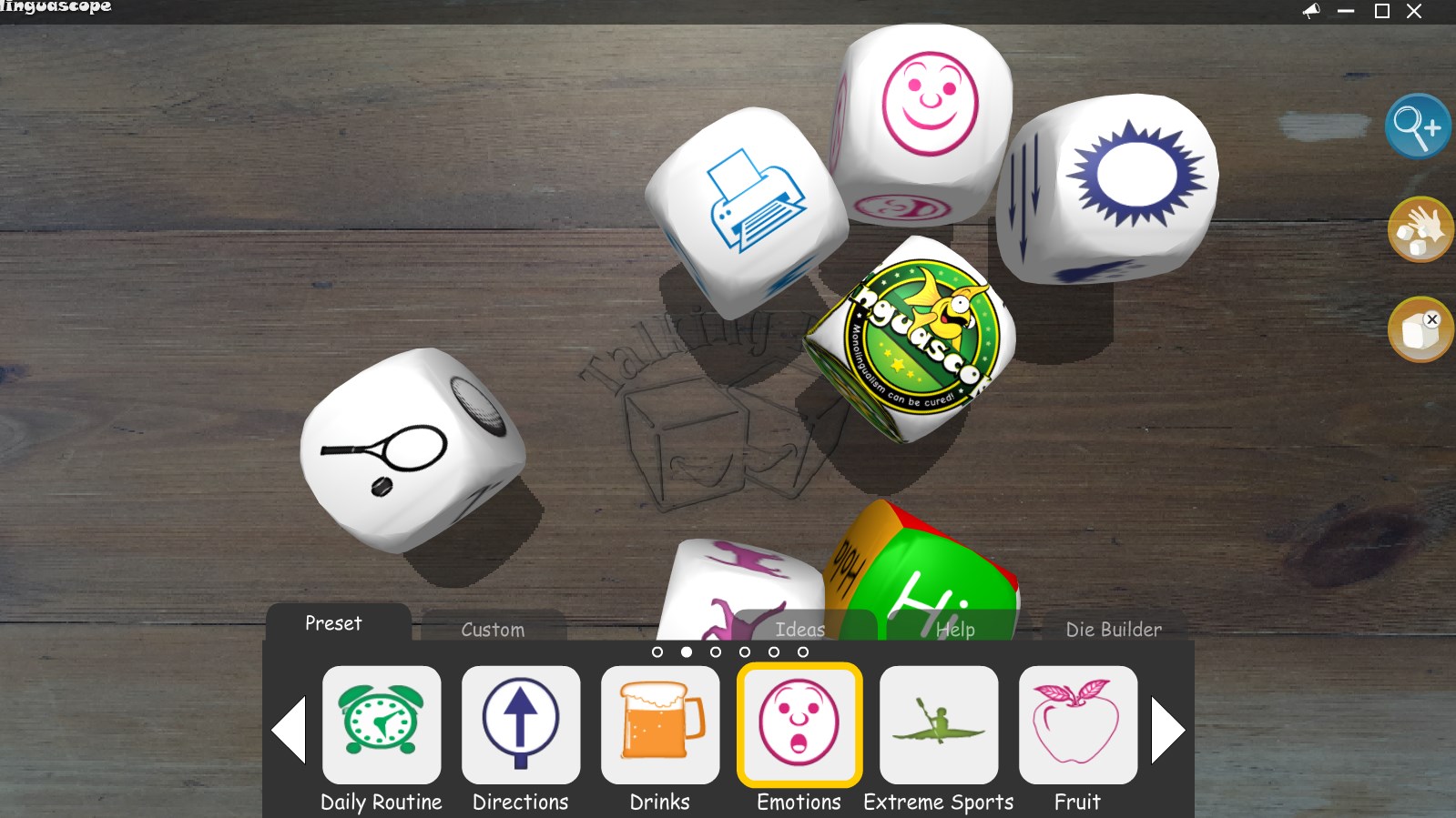 With the Talking Dice app, you can select the various dice and roll them on the screen, as well as create your own dice importing pictures or typing words. Only your imagination is the limit to the kinds of dice you can make!