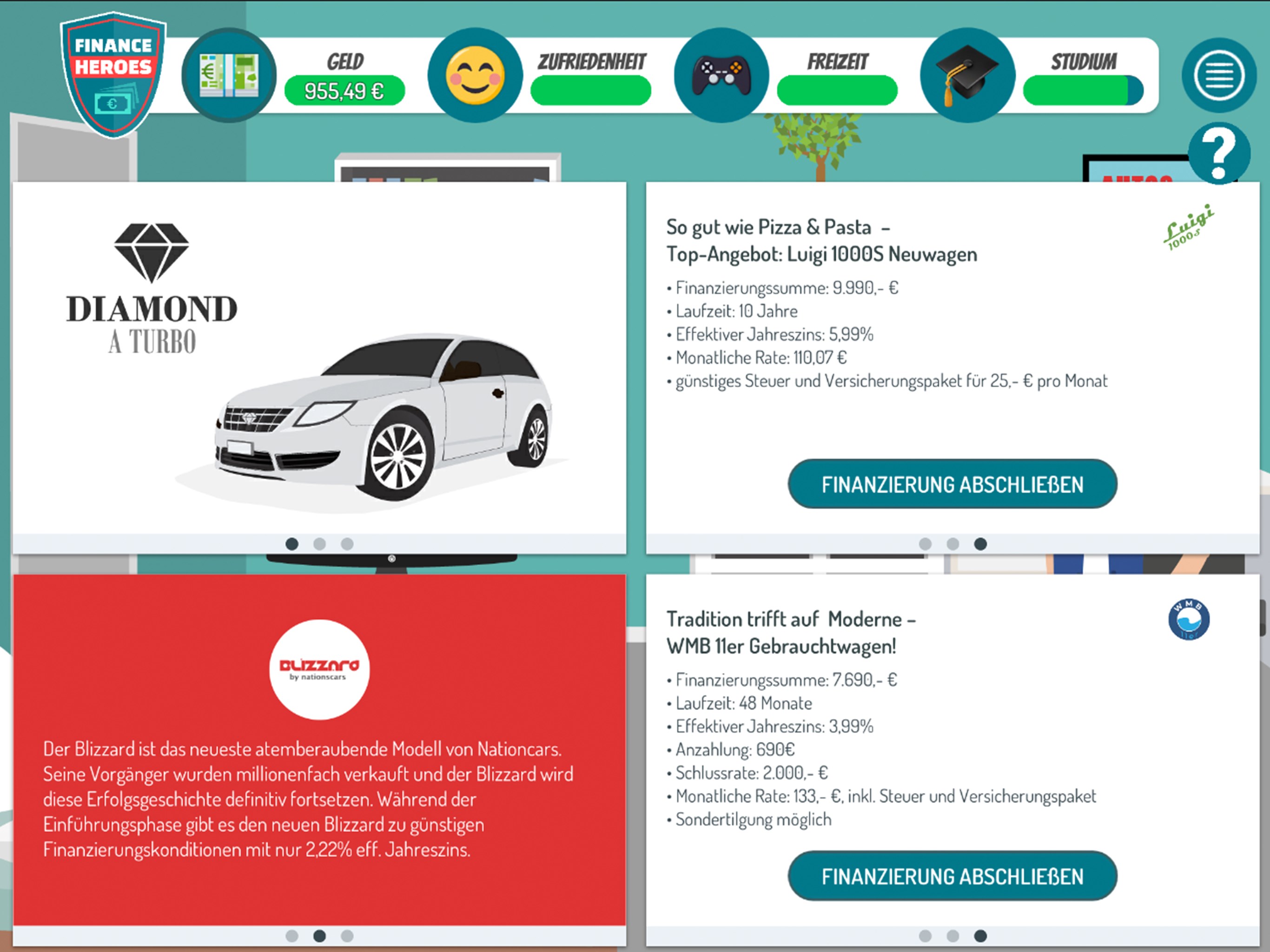 Nachhaltiges Finanzwissen für Jugendliche zu Sparmöglichkeiten, Krediten und Versicherungen – lebensnah und handlungsorientiert mit der digitalen Spiele-App FinanceHeroes.