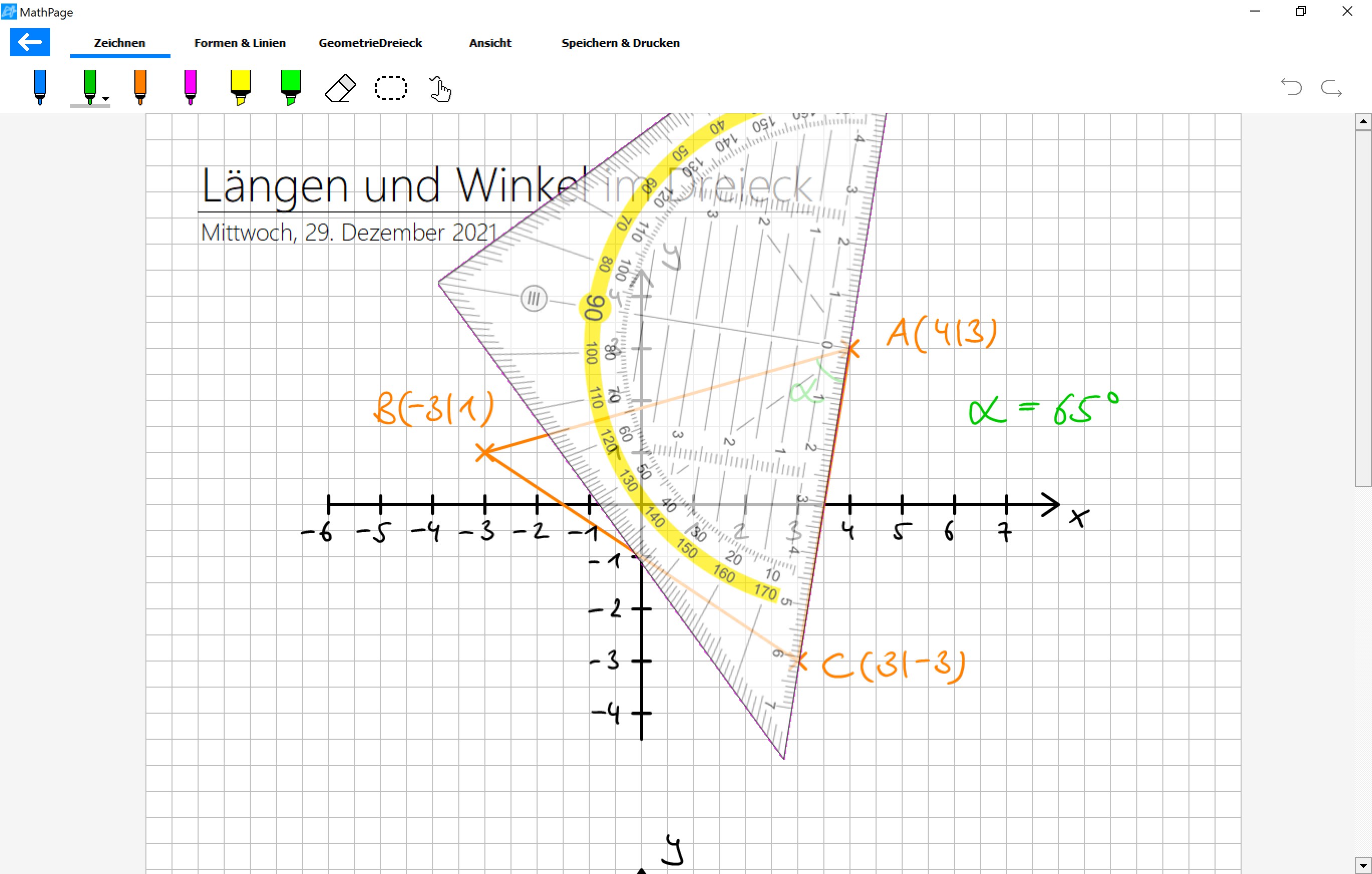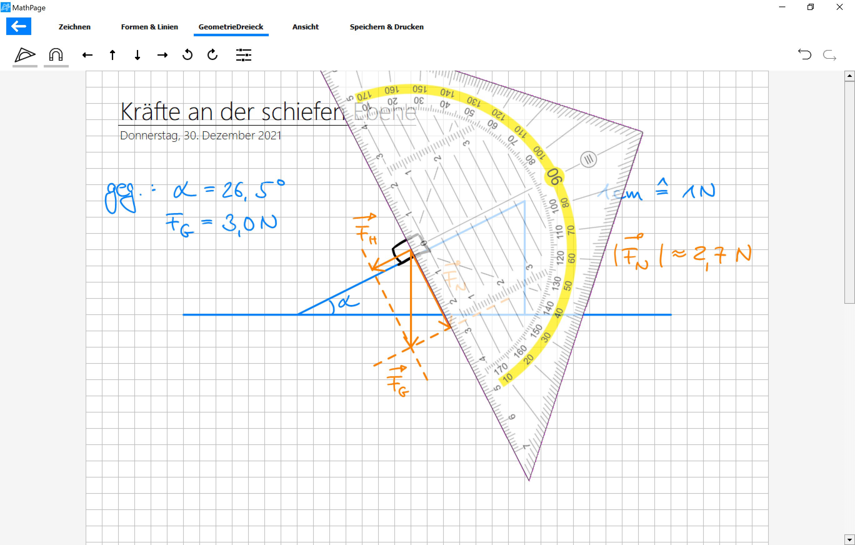 Die einfache und intuitiv bedienbare App MathPage ermöglicht die Anfertigung digitaler Heft- und Tafelaufschriebe analog zur Arbeit im Schulheft aus Papier. So werden Schülerinnen und Schüler in die Lage versetzt, den Tafelaufschrieb (z.B. Geometrie oder Physik) eins zu eins in ihr Heft zu übertragen. Die Arbeitsfläche entspricht genau einer DIN A4 Seite. Das Geodreieck ermöglicht exaktes Zeichnen und Messen von Strecken und Winkeln. Mit Hilfe der am Raster ausrichtbaren Linien können auch geometrische Konstruktionen und Koordinatensysteme schnell am Bildschirm bzw. Beamer umgesetzt werden. Keine Folgekosten, kein Abo, keine InApp-Käufe.