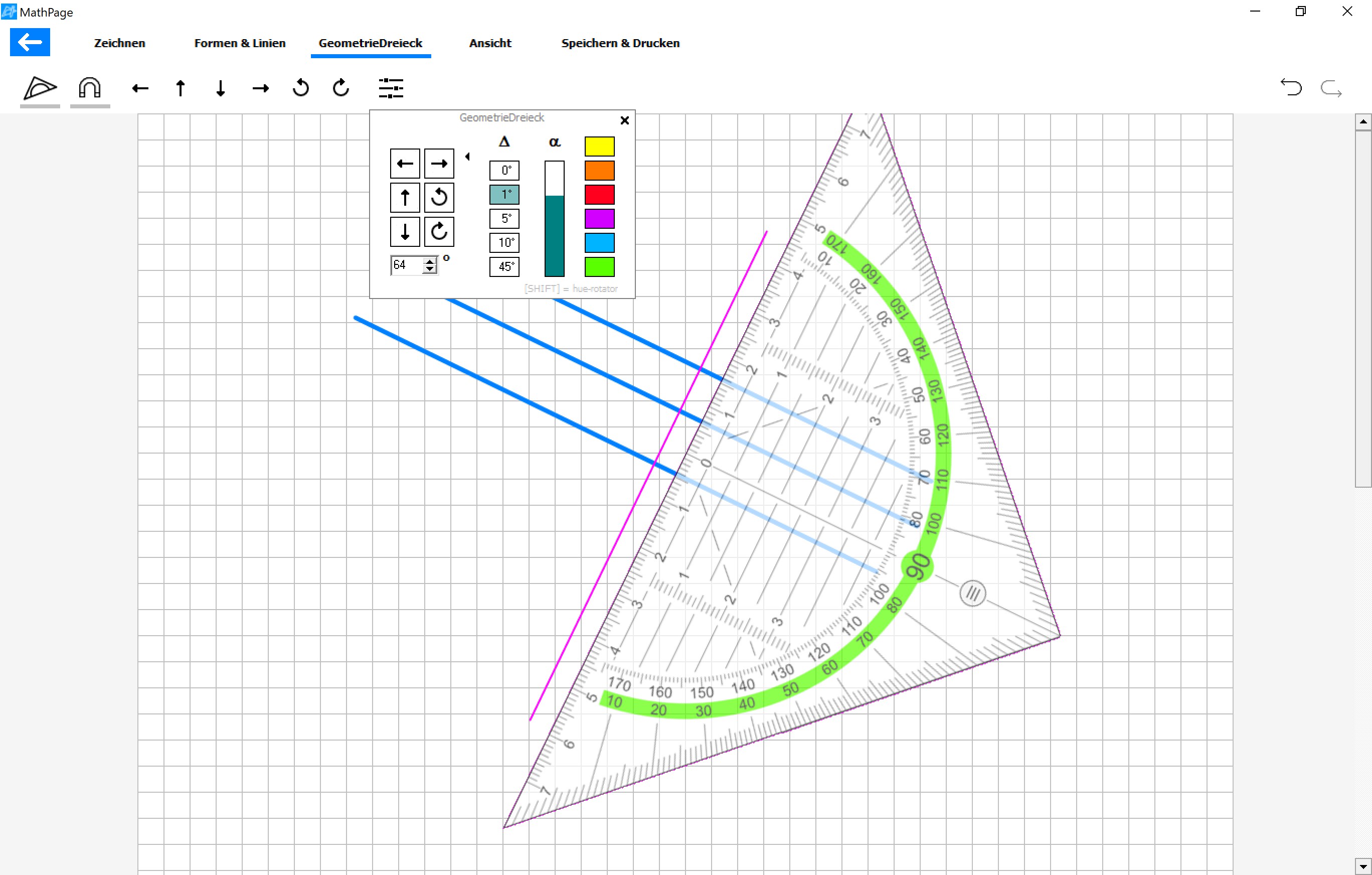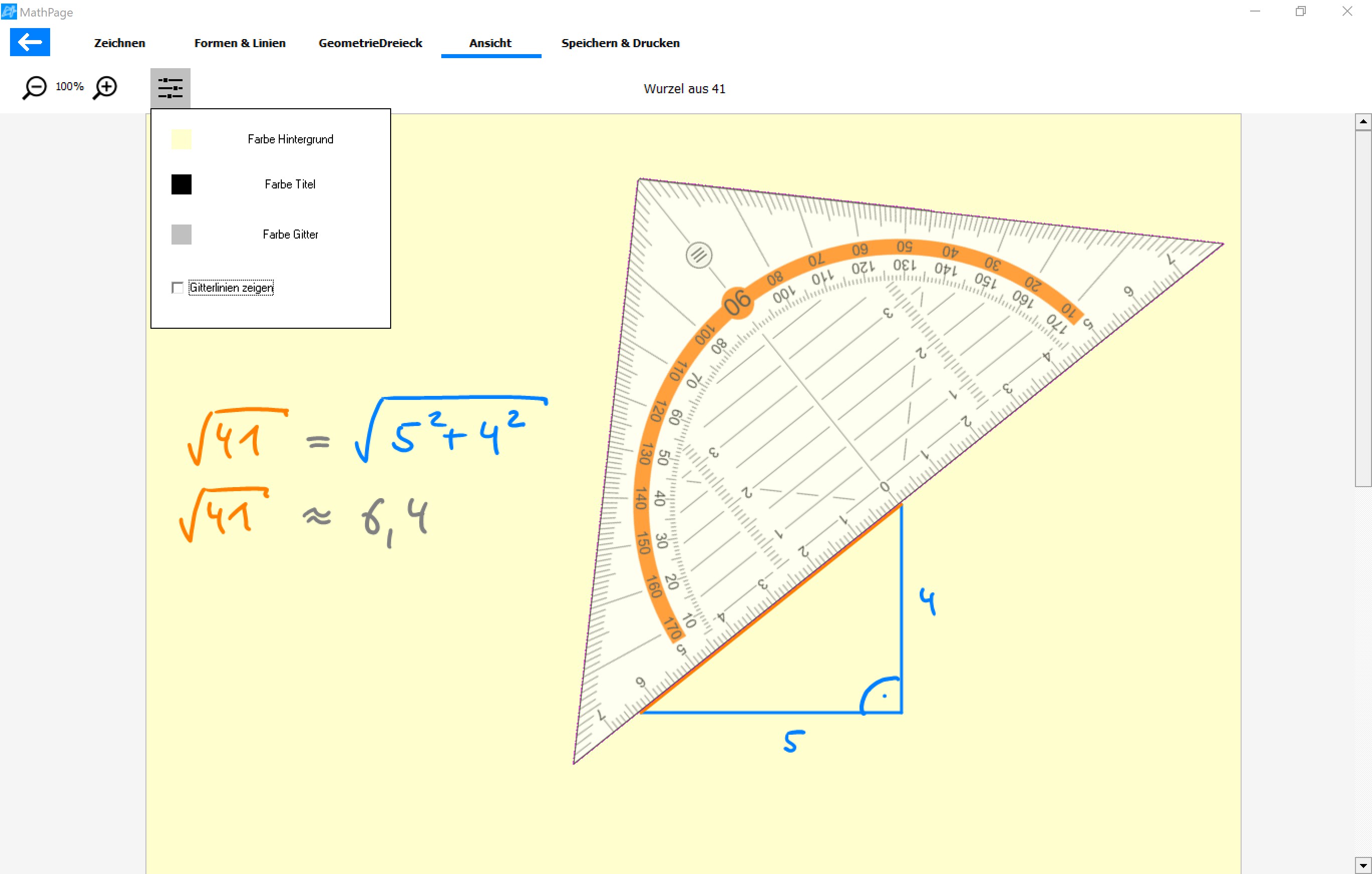 Sprachen Deutsch / EnglischDigitale DIN A4-Seiten mit Optimierungen für Geometrie, Mathematik, Physik und andereIntegriertes, digitales GeodreieckEinfach und intuitiv bedienbar mit Maus, Finger oder StiftExaktes Zeichnen durch magnetisches 0,5-cm-Raster, einfaches Zeichnen von KoordinatensystemenExport als pdf oder jpgMillimetergenau Drucken: Als pdf exportieren, dann unskaliert (100%) druckenKein Abo, keine In-App-Käufe