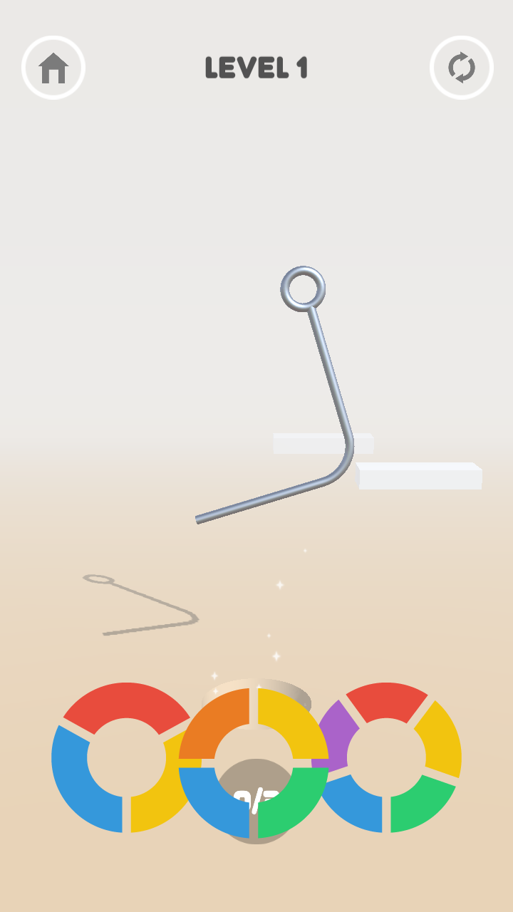In Slide Hoops, your goal is spin the metal shape around, and aim it so the colorful rings end up in the hole. First, you have to analyse the shape in front of you - some of them are tricky and you need to be clever to solve them.