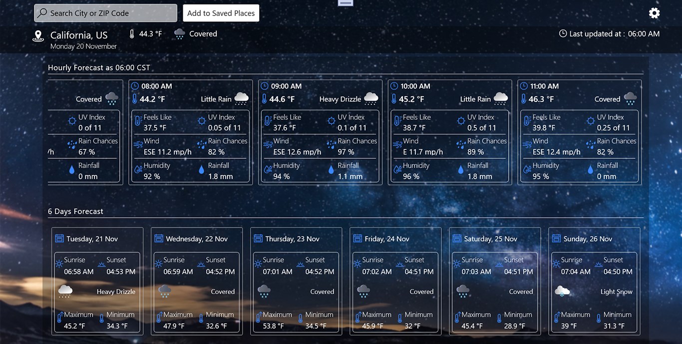 - Monitor key climate data, including temperature, wind speed, direction, and hours of daylight.