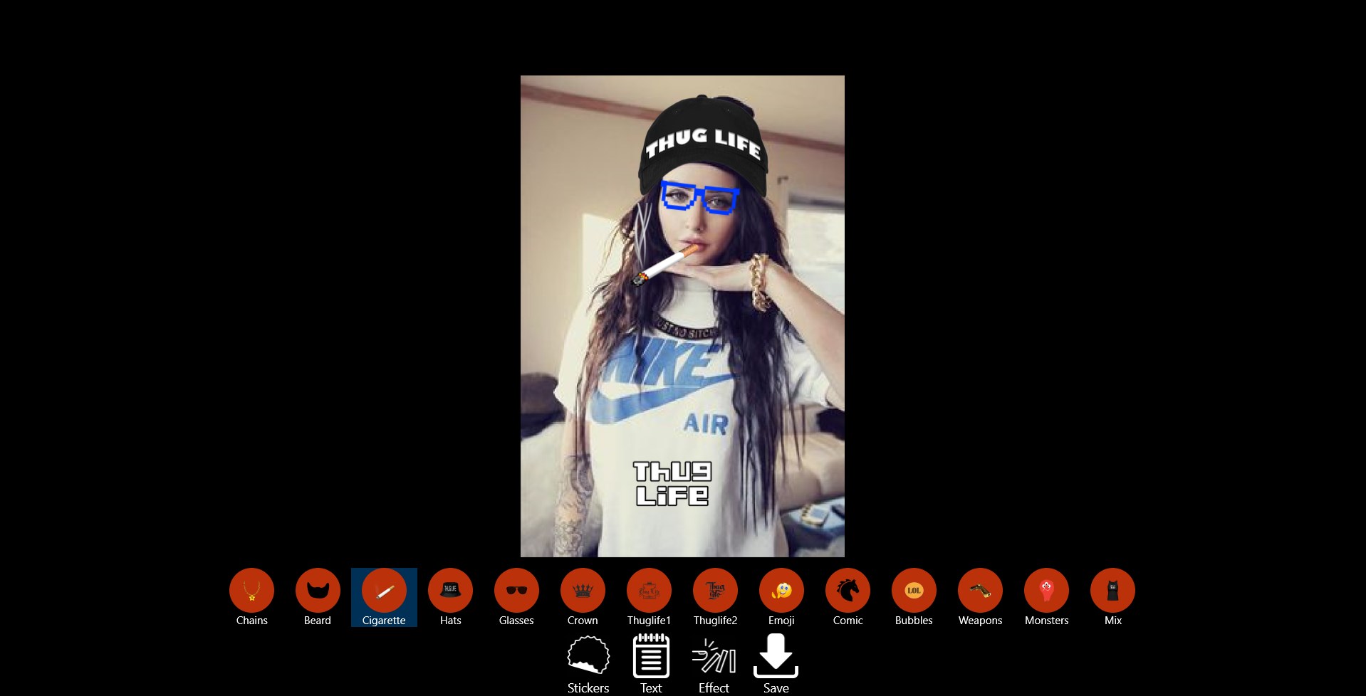 Thug Life Photo Editor let's you edit your Phot with Thug Life joints, sunglasses, necklace, hats and Thug Life Stickers.
