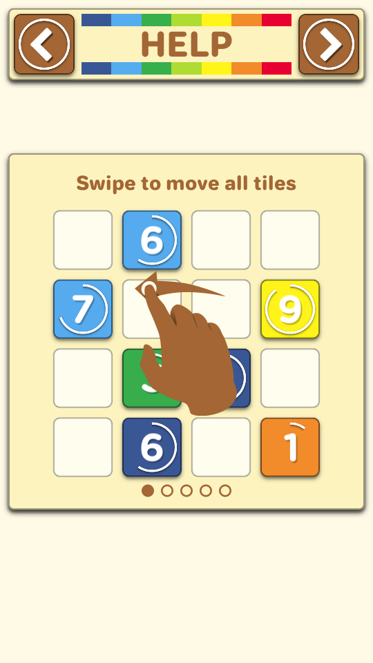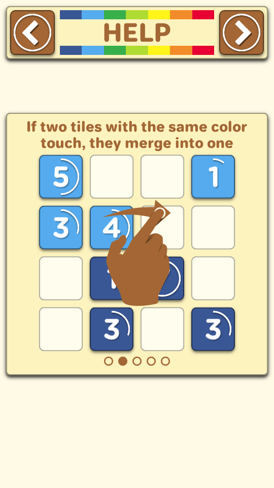 If a tile moves toward another tile of the same color, these tiles can merge into new one that is the sum of their values.