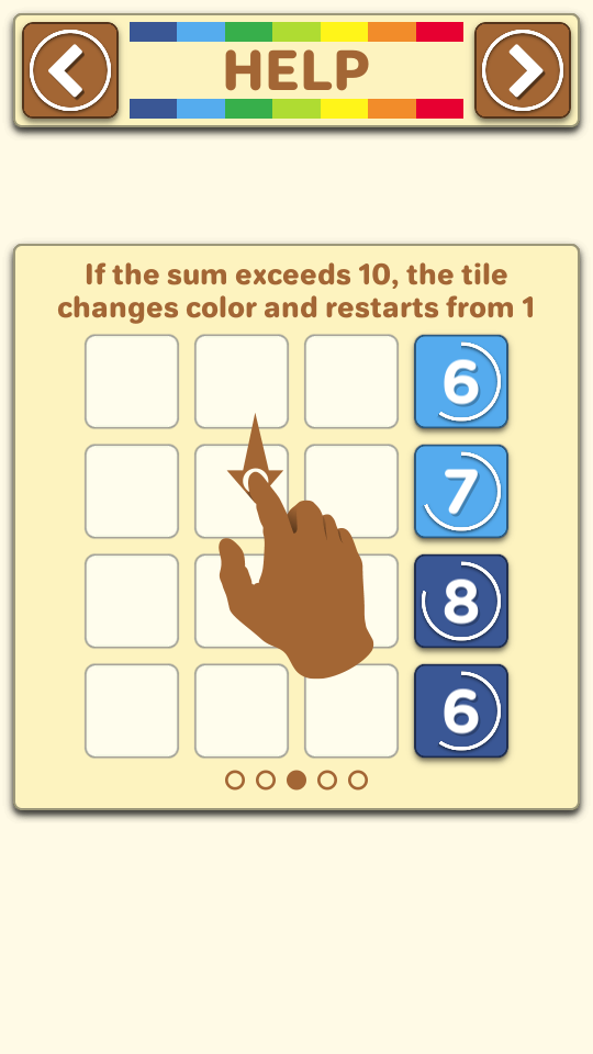 If the sum exceeds 10, the tile changes the color and its number restarts from 1.