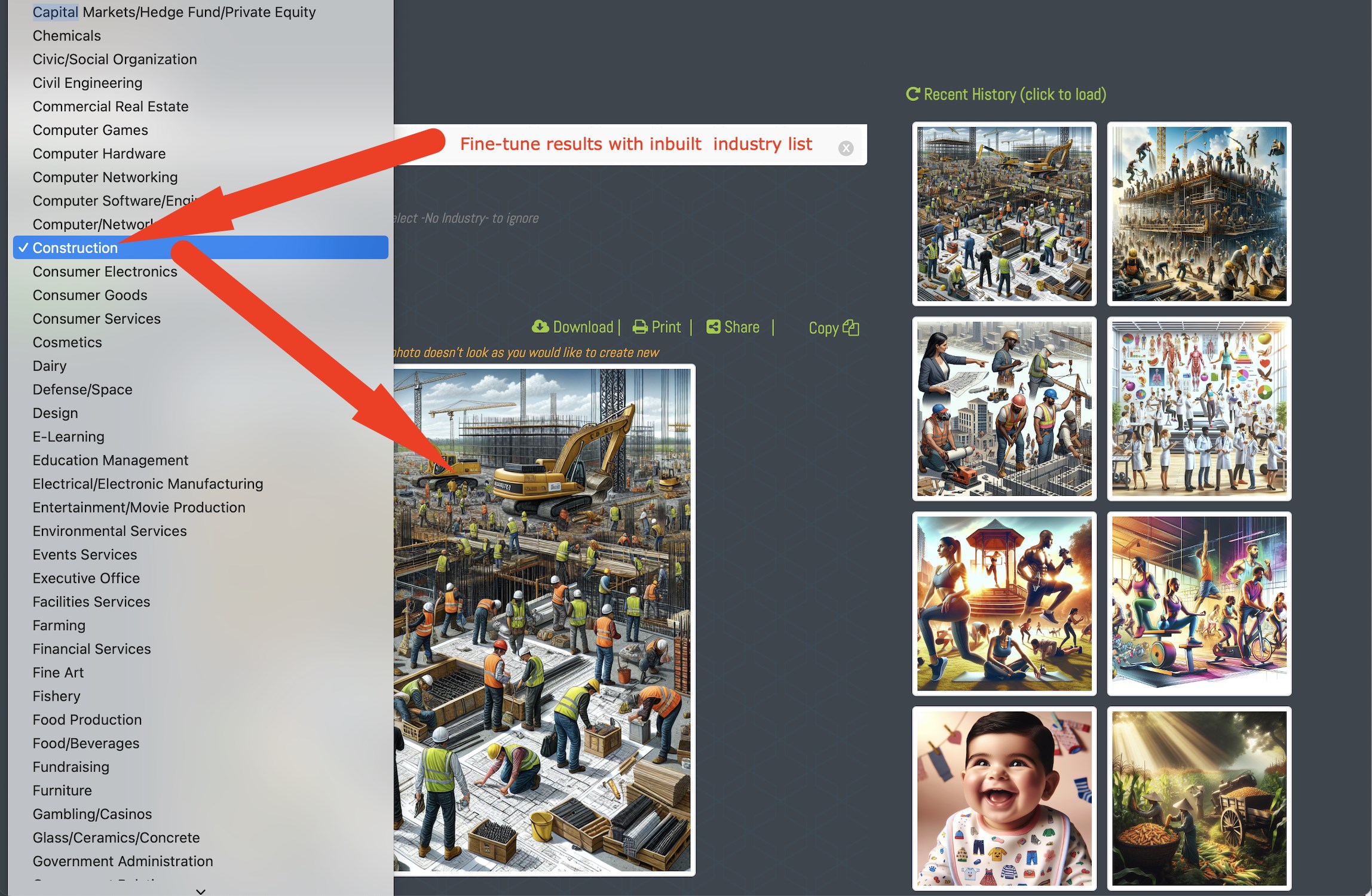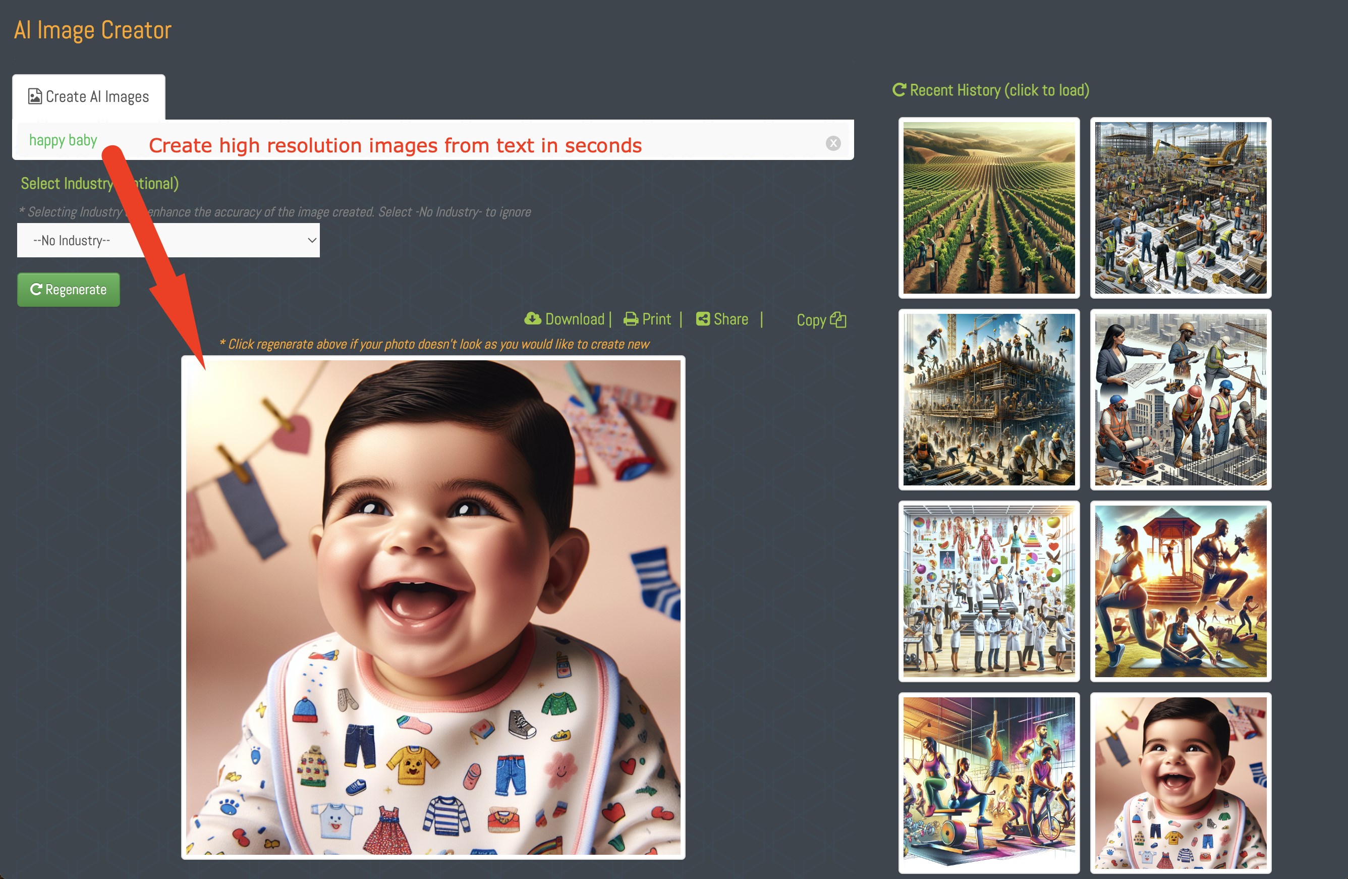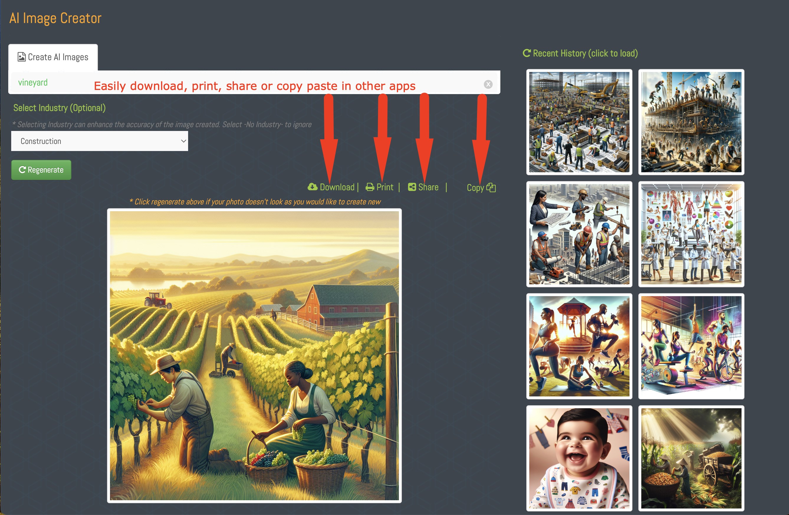 Generate High Quality Images that you can easily use in your projectsDownload, Print, Share or Copy paste in other appsGenerate full color or black and white ImagesUse the inbuilt Industry list of options to fine tune your image resultsBrings infinite possibilities of AI image generation on your computer