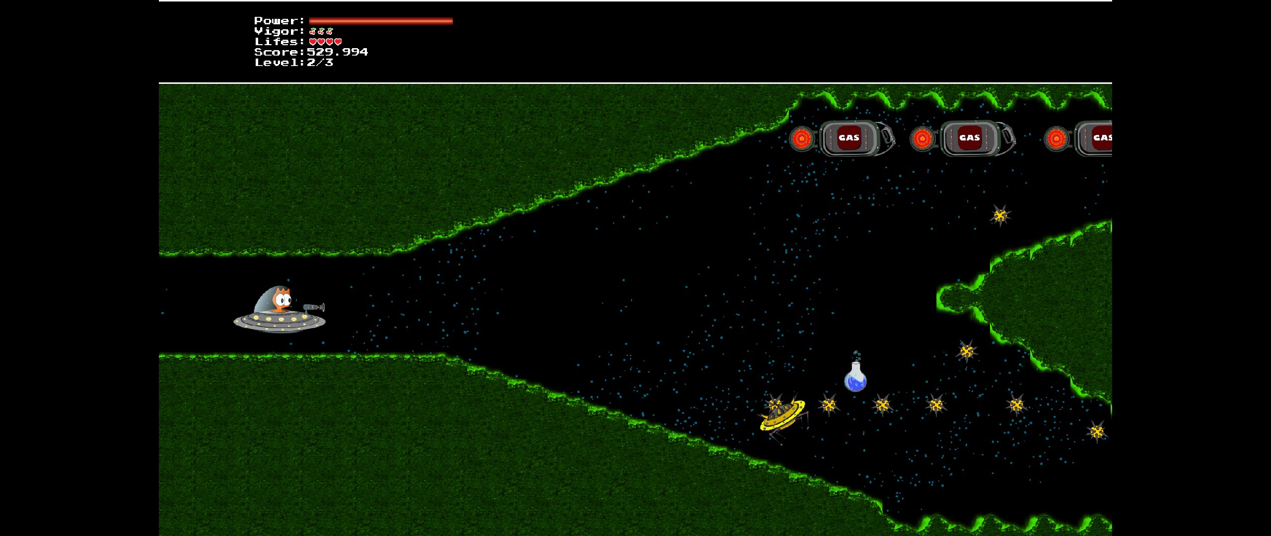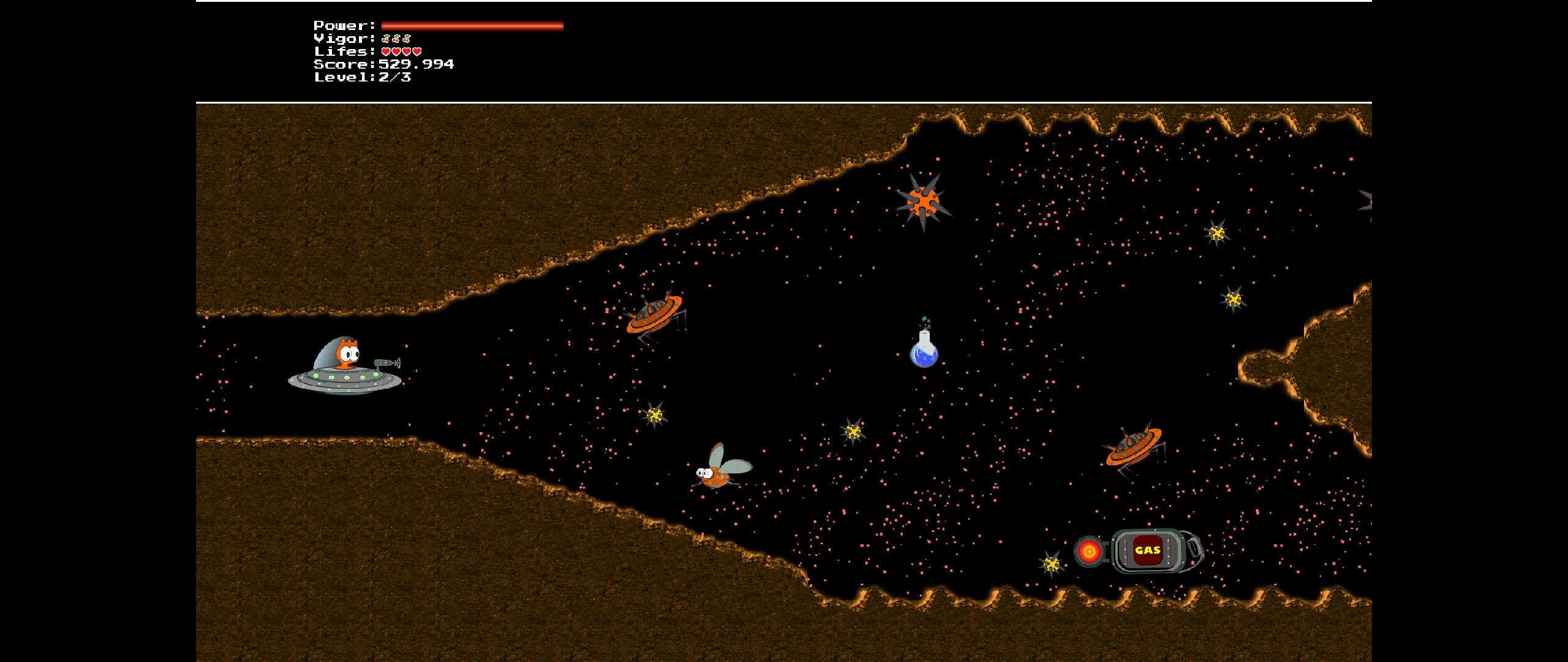 Astrold is a small inhabitant of Astro Galaxy. Your mission is save your planet that was invaded by Asdrubald, enslaving the population.