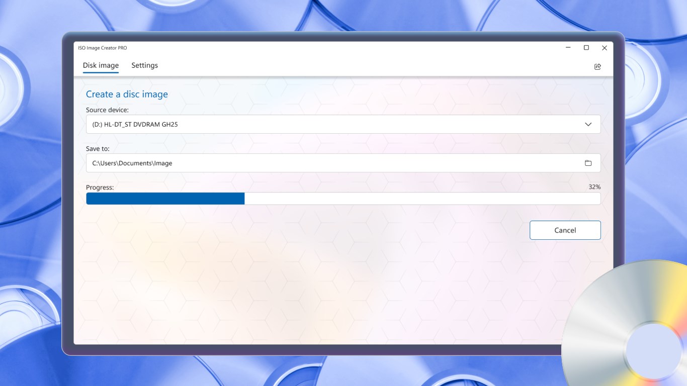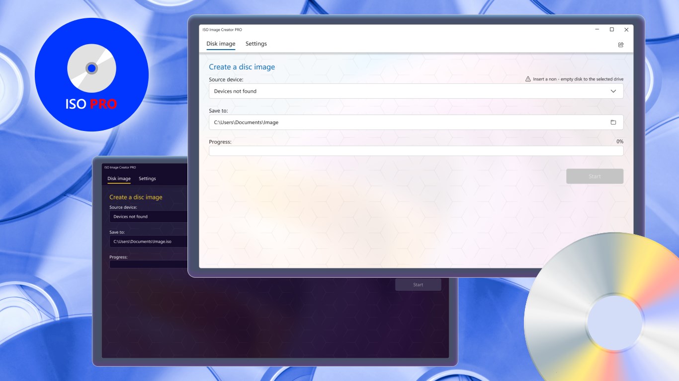 ISO Image Creator PRO - Powerful solution for making ISO image files from any CD, DVD and Blu-ray discs! You can also convert from external drives, after that, choose the desired location to save received files on your hard drive.