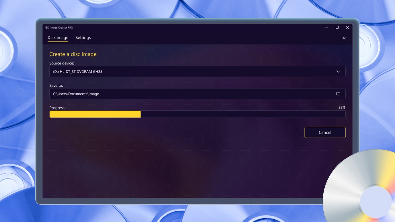 ISO Image Creator PRO provides the best experience as well as a beautiful interface for a really comfortable use. It's never been so easy to extract images from discs!