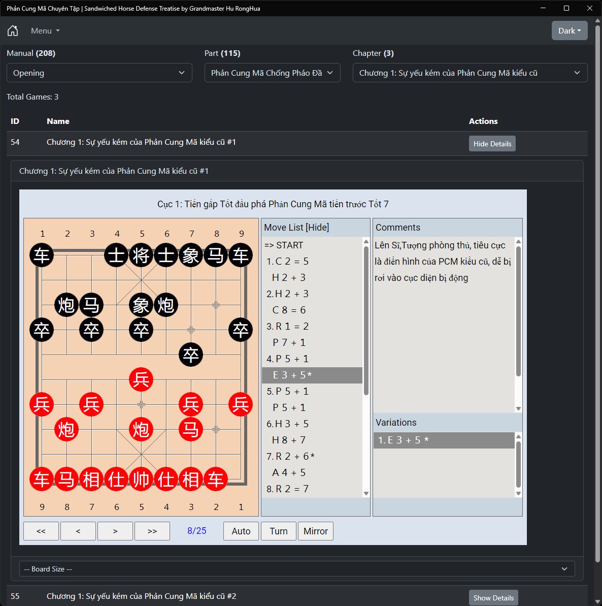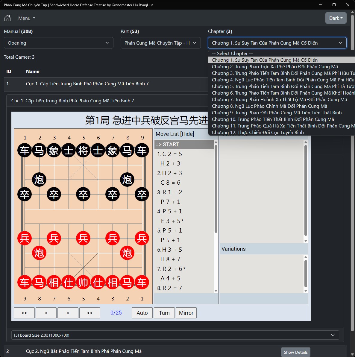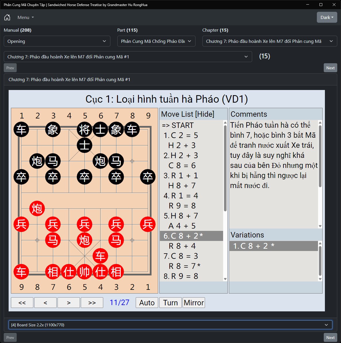 Over nearly 20 years of competitive experience and research, especially the practical and in-depth studies by many players in recent years, we've seen that new variations and discoveries are endless. This has greatly enriched the opening content of the Sandwiched Horse Defense against the Central Cannon. Today, we can confidently say that the Sandwiched Horse, along with the Screen Horse and the Straight Cannon, are the main openings that can effectively counter the Central Cannon.
