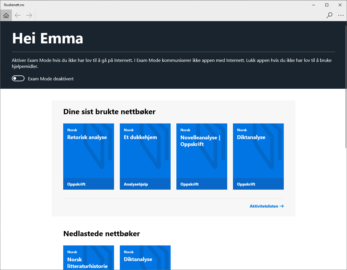 Med appen vår får du som abonnent tilgang til alle nettbøkene våre. Via appen kan du laste ned nettbøkene og ta de med til de eksamener der du ikke har tilgang til internett, men tillatelse til å bruke alle hjelpemidler.