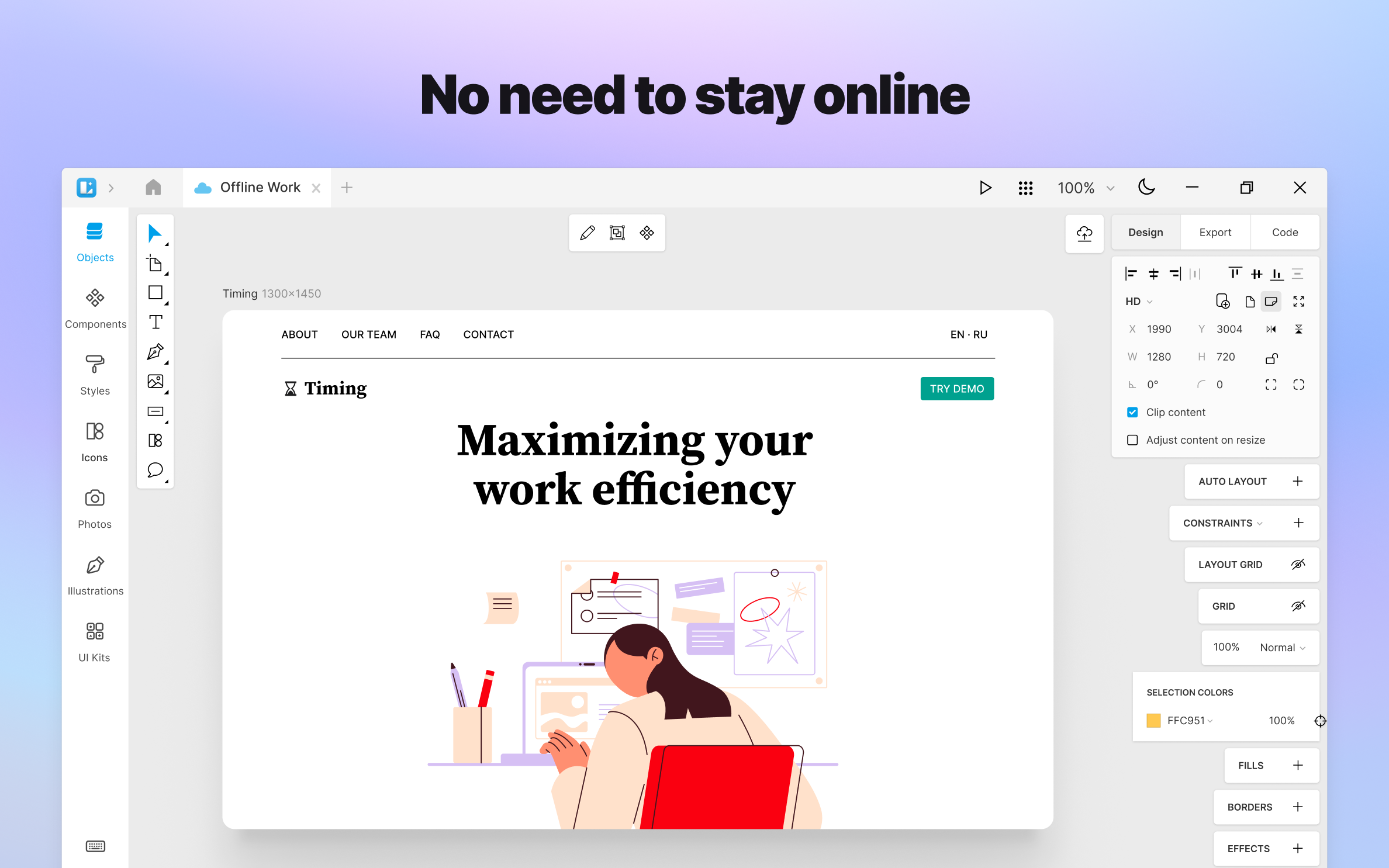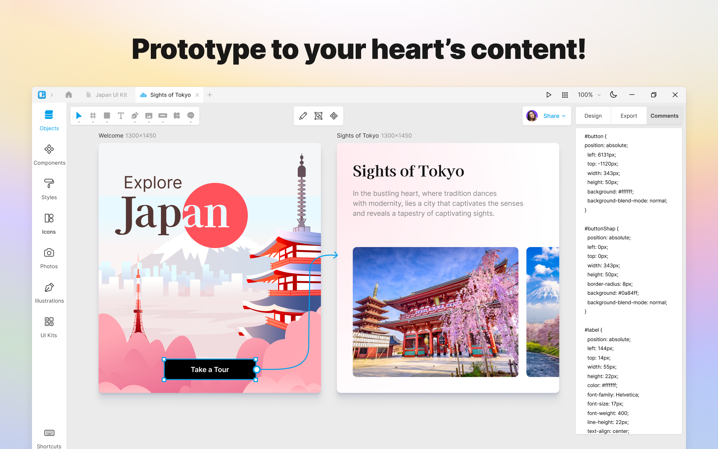 Don’t let other apps limit the flow of your imagination, design unique experiences with Auto Layout, Arc Editor, Auto Z-index, automatic shape coloring, and linked web design.