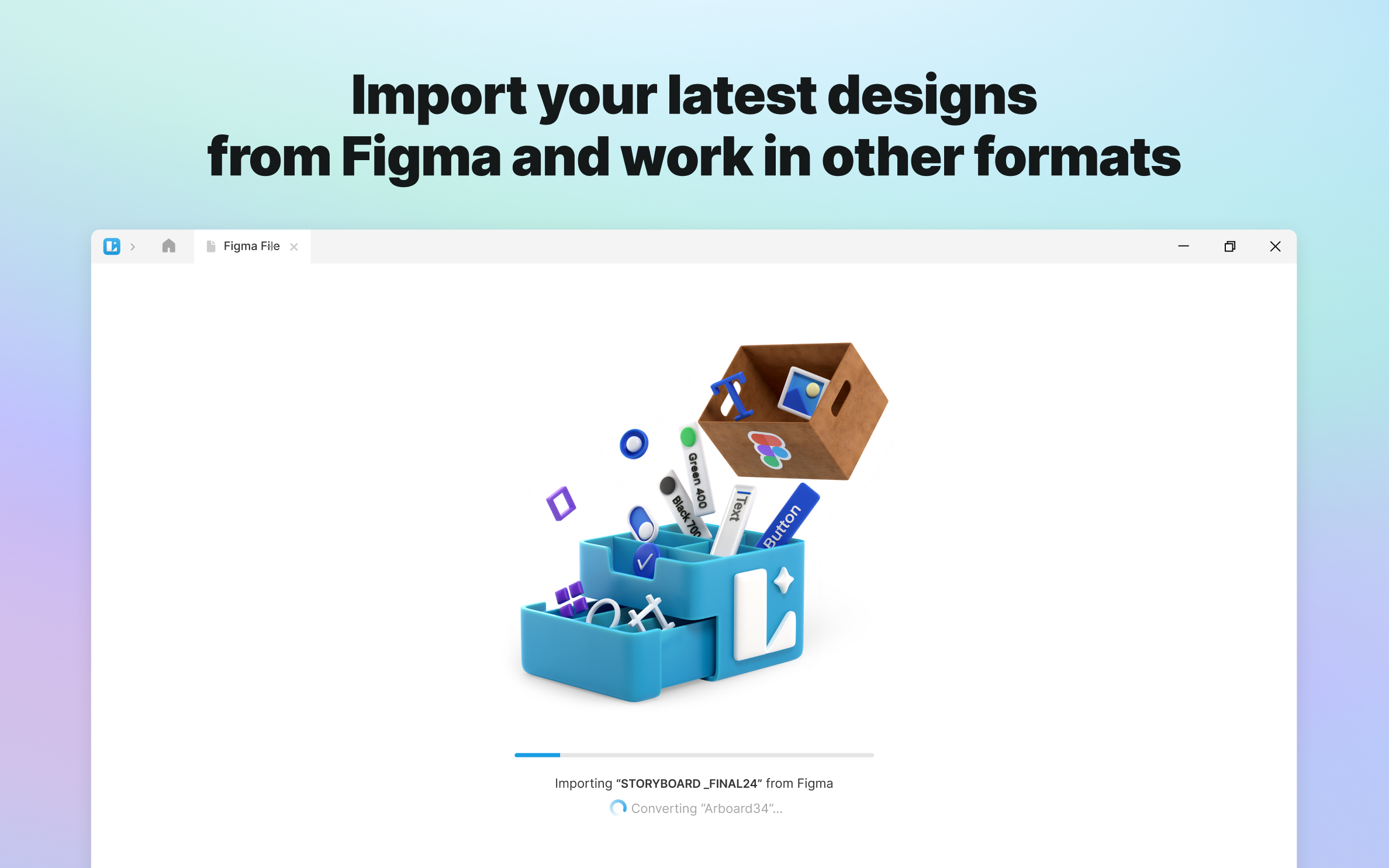 You've just come from Figma? No need to waste your time rebuilding your projects — with Figma Import, you can transfer files in and out.