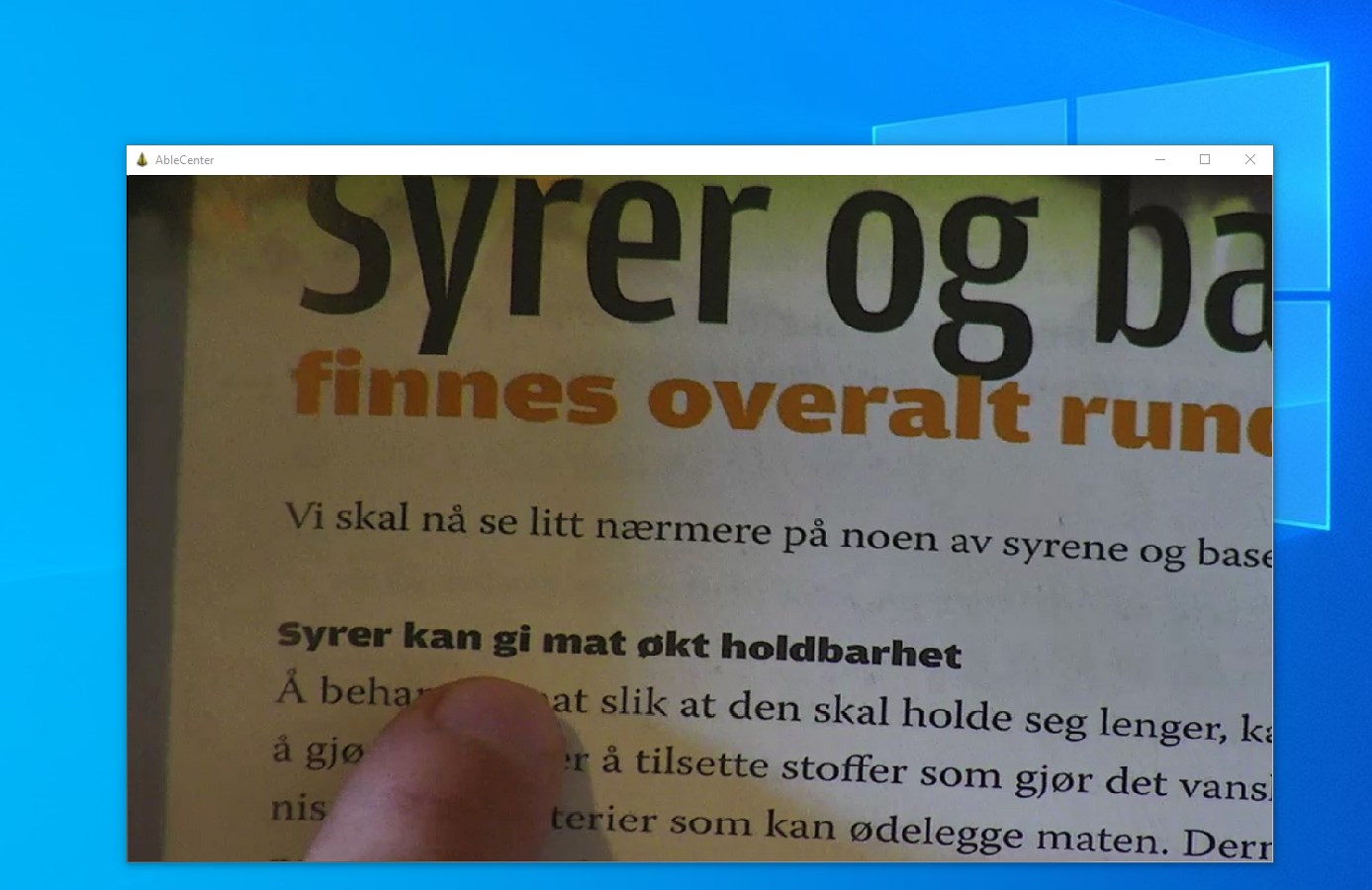 AbleCenter client Windows. AbleCenter lets you enlarge everything in your meeting room or classroom using an HD camera and a PC. The ceiling-mounted camera relays images wirelessly to the computer. Use the camera control software to move and manipulate the image.